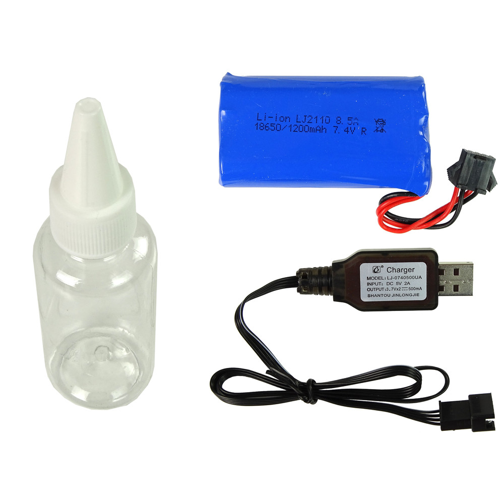 je napájané 7,4 V 12000 mAh batériou, ovládač dvomi 1,5 V "AA"