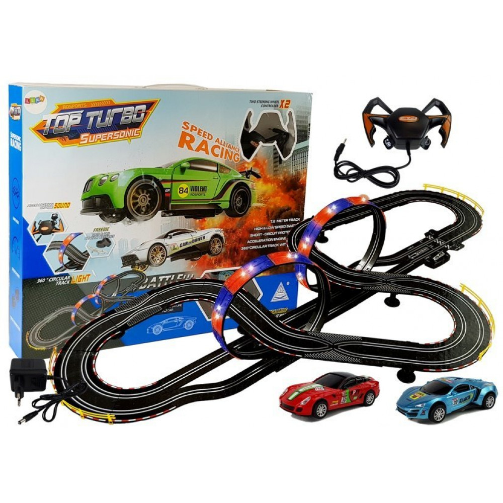 Predstavujeme realistickú závodnú dráhu pozostávajúcu z pôsobivých slučiek. Má viacfarebné LED diódy, ktoré spestria šialenú jazdu. Umožňuje súťažiť dvom vodičom súčasne, každý z nich dostane svoje vlastné auto a ovládač. Toto prebudí vo vašom dieťati ducha súťaže, ctižiadosti a chytrosti!