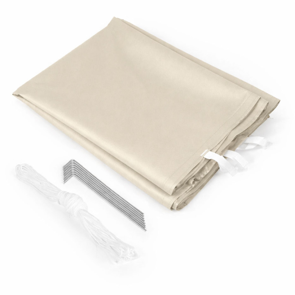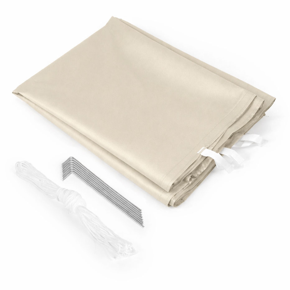 - Plášť jevyrobený z odolného materiálu PVC 420D – strecha a 210D, ktorý je odolný voči dažďu a UV žiareniu, preto sa dobre osvedčuje pri stretnutiach v záhrade, podujatiach pod šírym nebom alebo sezónnej obchodnej činnosti.