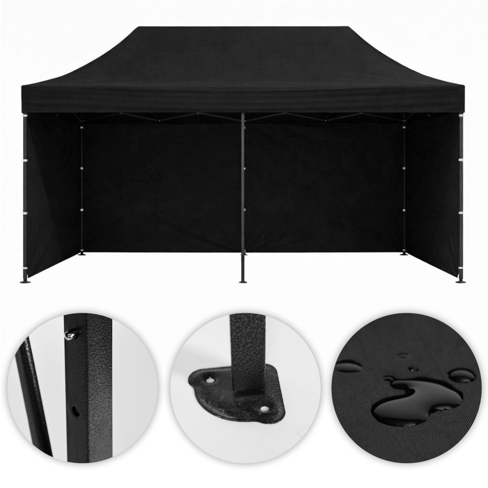 - Automaticky rozkladateľná konštrukcia výrazne uľahčuje prípravu pavilónu na použitie. Systém rýchleho rozkladania umožňuje efektívne rozložiť stan bez zložitej montáže, čo je obzvlášť užitočné pri organizovaní podujatí pod šírym nebom, veľtrhov alebo stretnutí v záhrade. Oceľový rám zabezpečuje stabilitu konštrukcie, samotný proces rozloženia spočíva v roztiahnutí nôh a celá konštrukcia sa rozloží sama, vďaka čomu je možné zastrešený priestor pripraviť v krátkom čase. Oceľ je práškovo lakovaná, čo ju chráni pred koróziou.