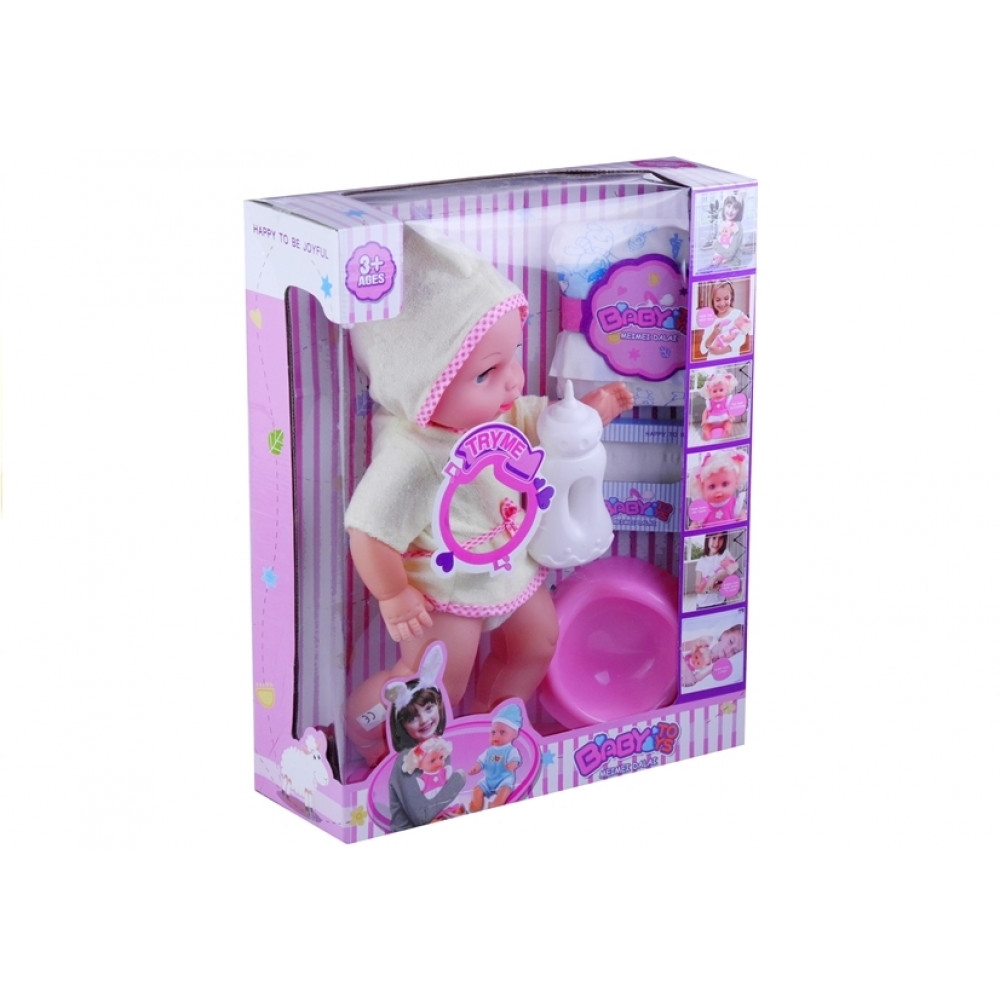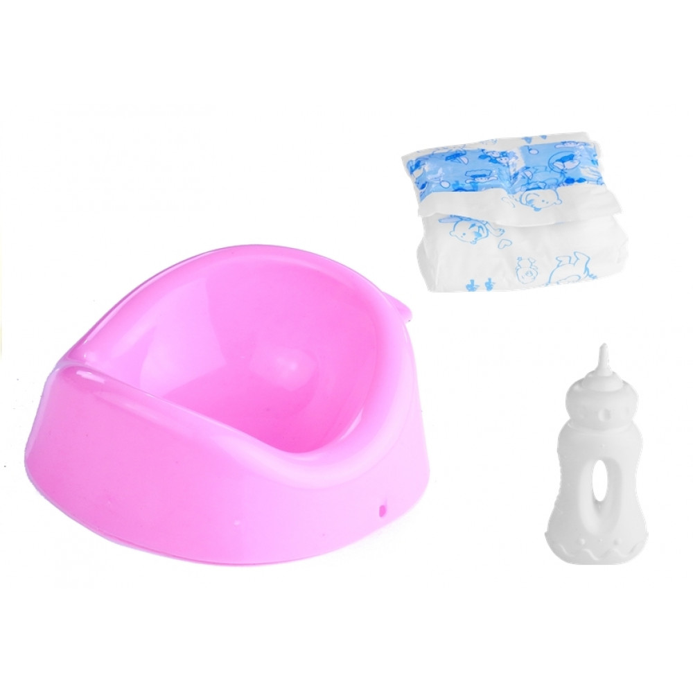 V súprave s bábikou sú k dispozícii doplnky potrebné pre starostlivosť o dieťa.