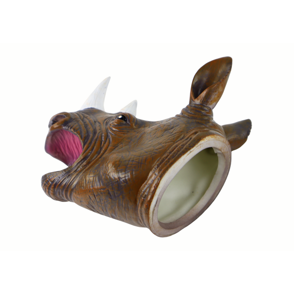 má charakteristické čierne oči a na prednej časti hlavy má rohy. Hračka je