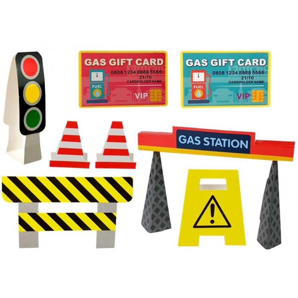 Táto nádherná modro-žltá čerpacia stanica umožňuje zábavné tankovanie, ktoré bude pre tých najmenších určite skutočnou zábavou! Hračka má svetelné a zvukové signály. Keď zapnete tlačidlo na vyslovovanie angličtiny, vaše dieťa si osvojí jazykové znalosti. Stanica má vchod pre kreditné karty, po stlačení tlačidla na rukoväti sa načerpajú litre. Každé tlačidlo je plné prekvapení, doprajte dieťaťu zábavu, rozmanité funkcie ho zamestnajú na celé hodiny. Jedenásť rôznych piesní pre deti, učenie sa asi 15 rôznych mien zvierat, sú niektoré z výhod. Čerpacia stanica má tiež držiak hadice, ktorý sa dokonale hodí pre malé detské ruky. Sada navyše obsahuje dve autá s priateľskými tvárami. Jedným z nich je miešačka betónu, zatiaľ čo druhé má rebrík na streche. Dve kreditné karty, všetky značky, semafory a stĺpiky sú tiež jedným z doplnkov. Vďaka tomu bude vaše dieťa schopné vytvárať najrôznejšie scenáre.