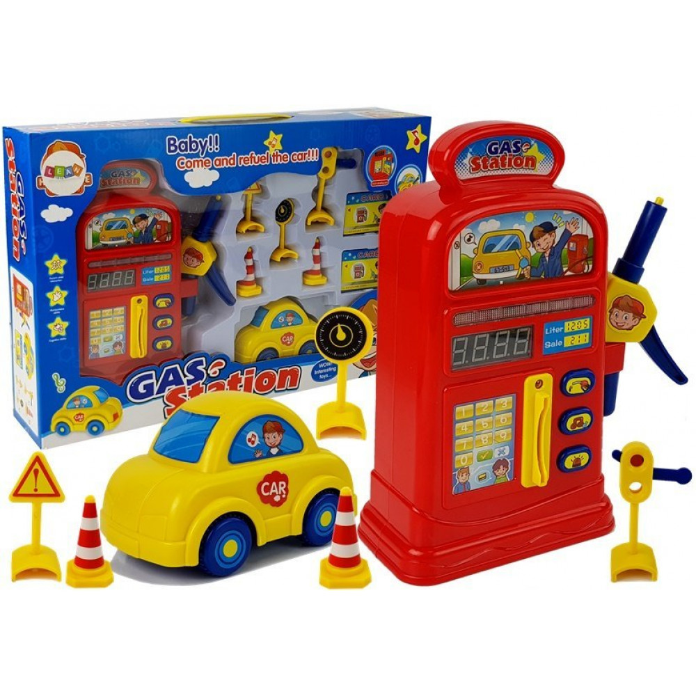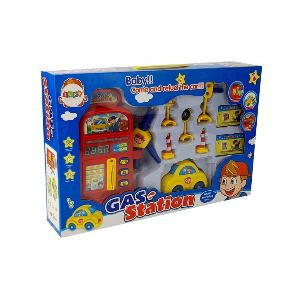 Čerpacia stanica s autíčkom a dopravnými značkami + svetlo a zvuk