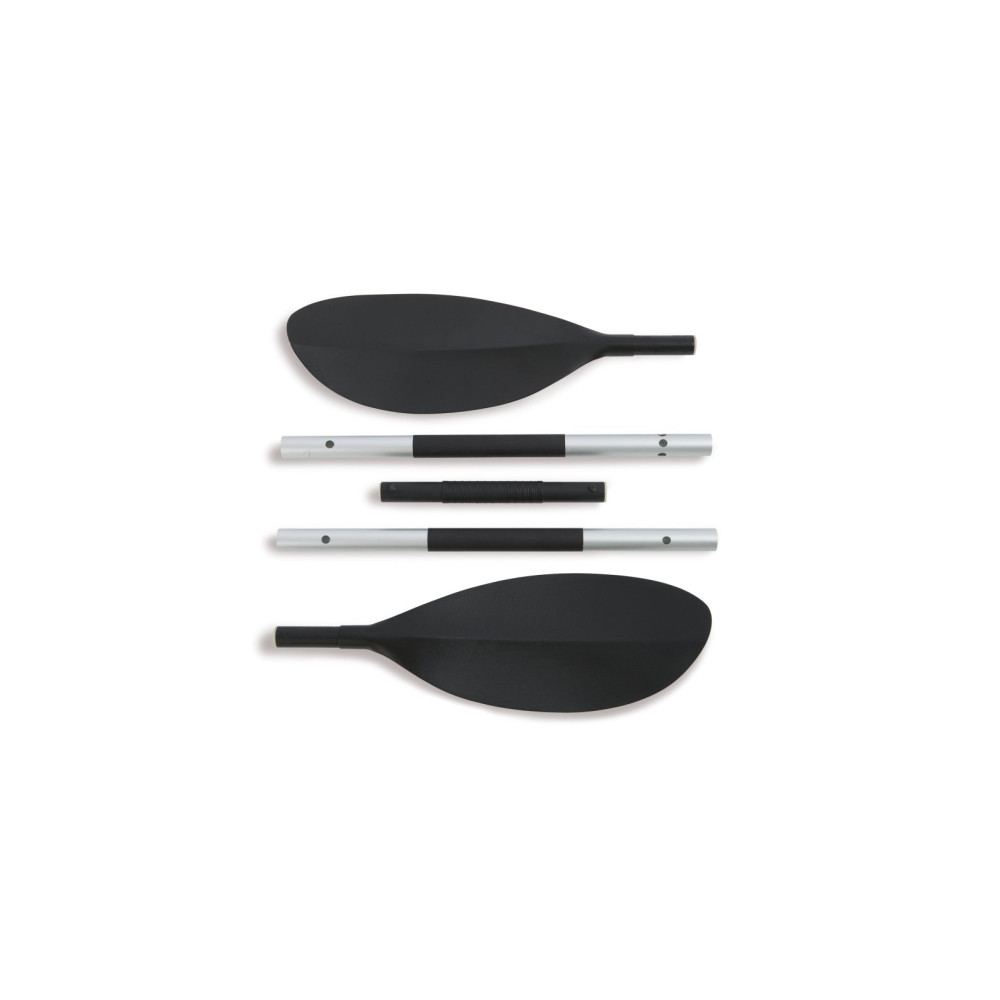 Súčasťou súpravy s kajakom sú dve hliníkové veslá, ktoré zabezpečia pohodlné veslovanie a presné manévrovanie s kajakom. Ich odolná a ľahká konštrukcia umožní pohodlné používanie po dlhú dobu a ergonomické rukoväte zaručia istý úchop aj vo vlhkých podmienkach.