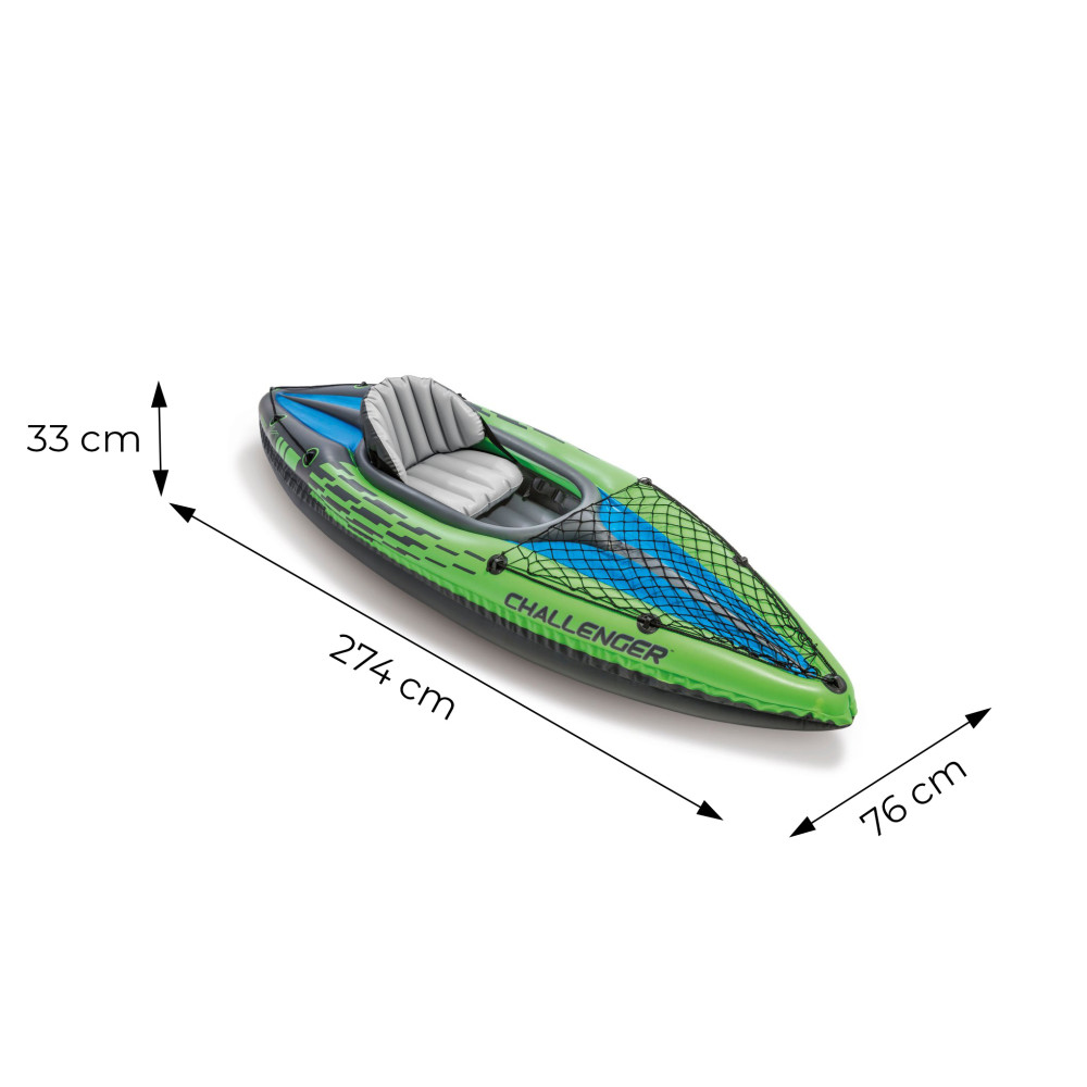 Objavte radosť z vodných dobrodružstiev s nafukovacím kajakom Challenger K1 značky INTEX! Je to skvelá voľba pre ľudí, ktorí si cenia komfort a pocit bezpečia pri plavbe. Výrazné farebné prevedenie zaisťuje, že kajak je na vode lepšie viditeľný, čo dodatočne zvyšuje bezpečnosť používateľa. Pohodlné nafukovacie sedadlo s operadlom vám umožní užívať si komfort aj počas dlhších výletov. Praktická sieť na batožinu uľahčuje uloženie potrebného vybavenia a prepravu kajaku, čím je každá cesta ešte pohodlnejšia.