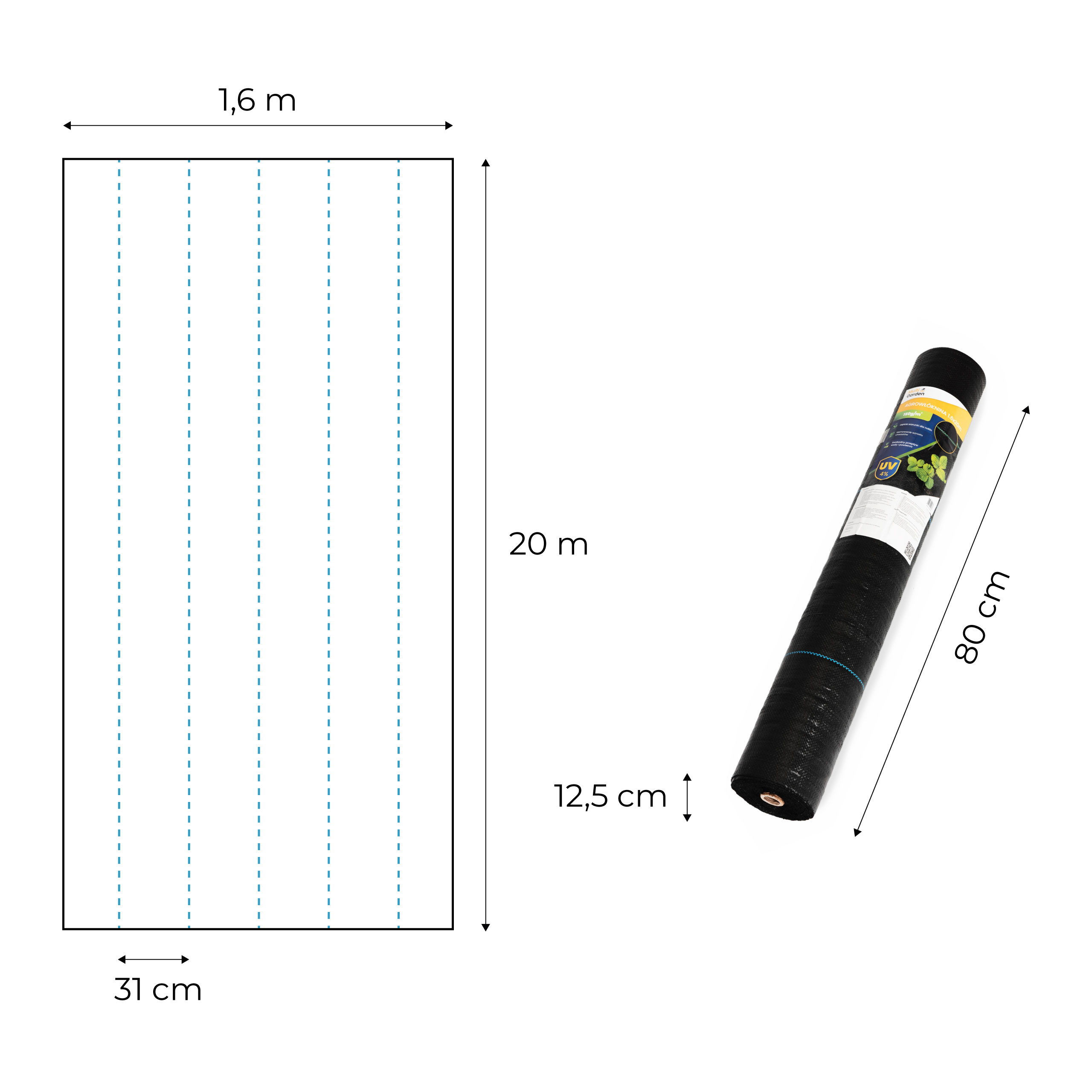 Modré pruhy na agrotextílii plnia praktickú funkciu, ktorá uľahčuje plánovanie výsadby. Umiestnené v rozstupoch po 31 cm pomáhajú zachovať rovnomerné vzdialenosti medzi rastlinami a presne vyznačiť miesta na výsadbu. Je to obzvlášť užitočné pri zakladaní záhonov, pestovaní zeleniny alebo výsadbe kríkov, kde záleží na estetike a správnej organizácii priestoru. Pásy urýchľujú prácu a zabezpečujú usporiadanejší konečný efekt.