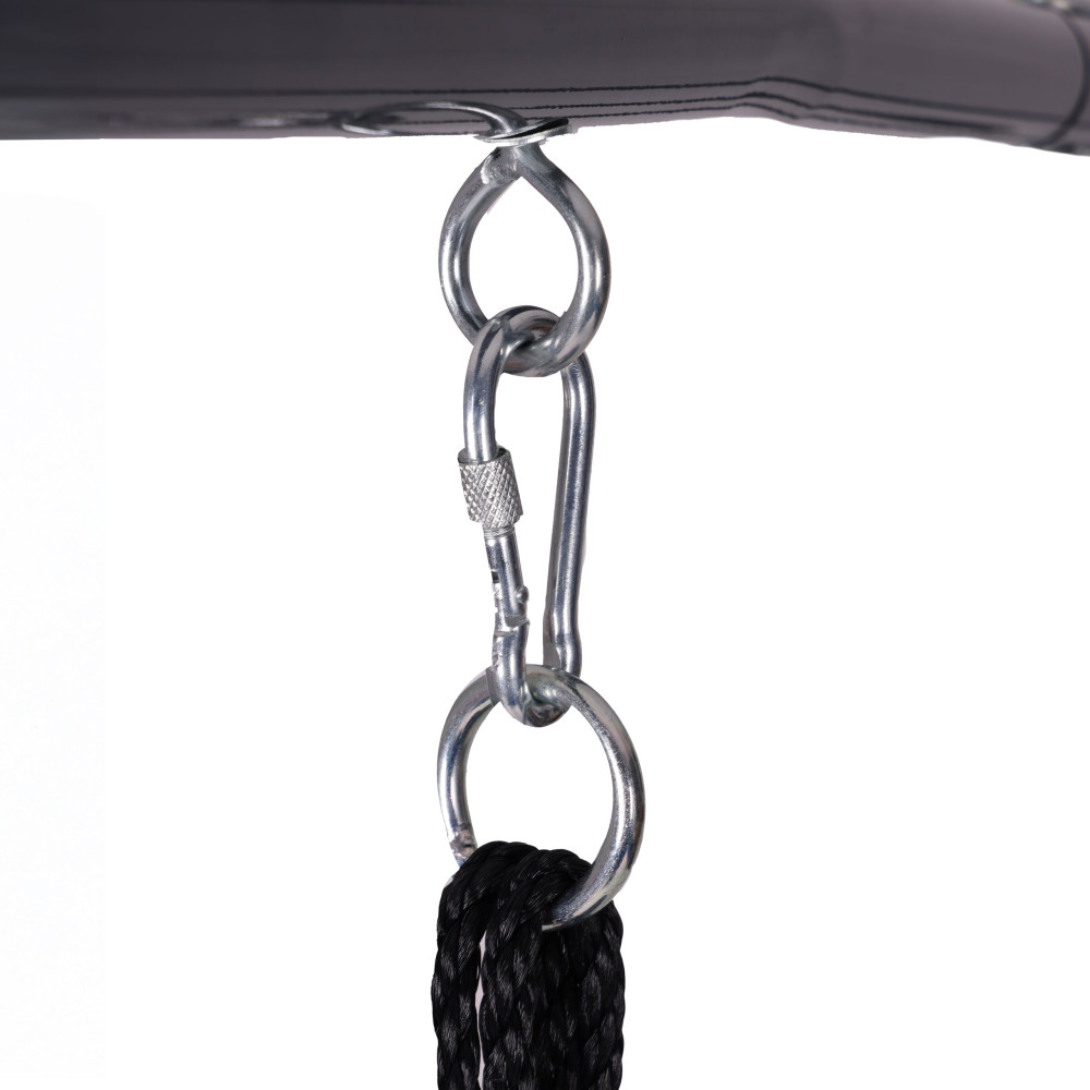 Odolné závesy zabezpečujúbezpečné upevnenie hojdačiek a zaručujú plynulé a pohodlné hojdanie. Vďaka pevnej konštrukcii sa tieto prvky osvedčujú pri každodennom používaní a udržujú správnu rovnováhu a trvácnosť celej konštrukcie.
