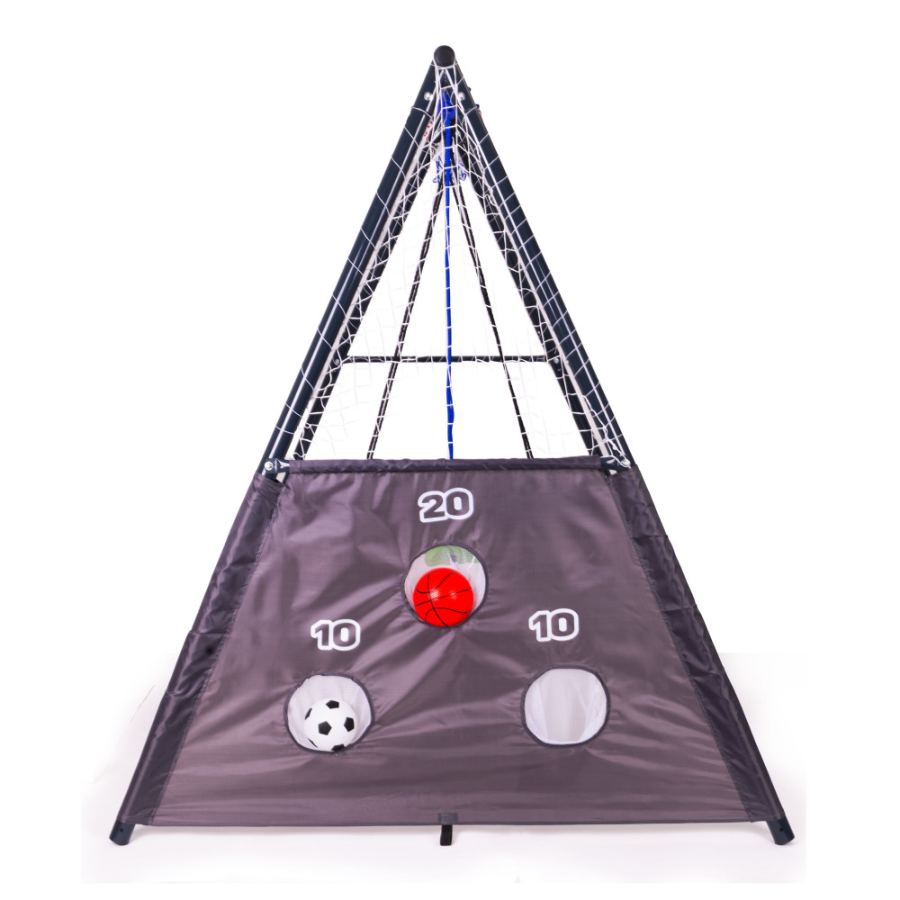 - Cielená podložka – je skvelým spôsobom, ako rozvíjať motorickú koordináciu a presnosť u detí. Umiestnená na boku konštrukcie umožňuje mieriť loptou do vyznačeného otvoru, čím poskytuje ďalšiu formu aktivity a spestrenie hry na čerstvom vzduchu.