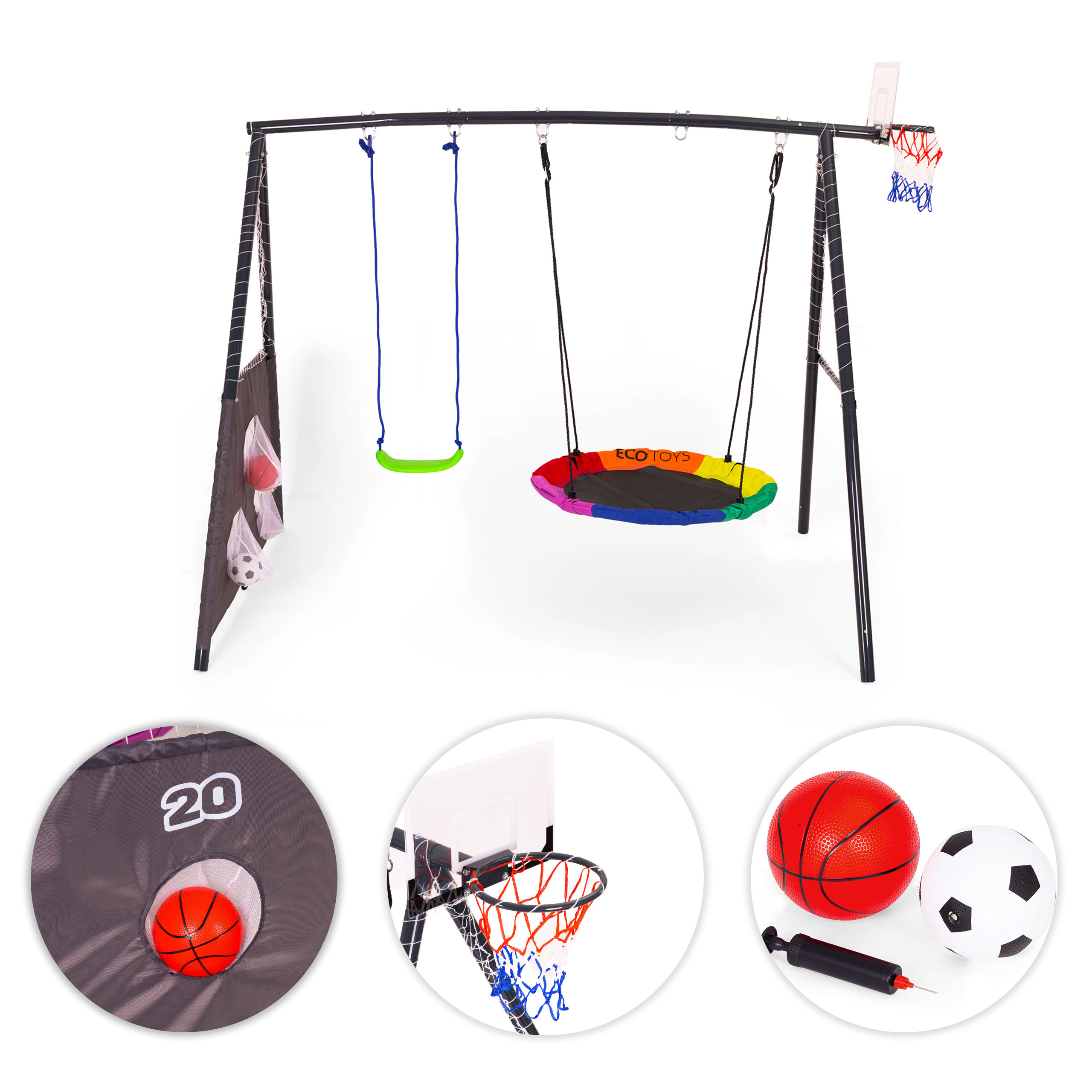 Detské ihrisko záhradná hojdačka 4v1 basketbalový kôš bocianie hniezdo ECOTOYS