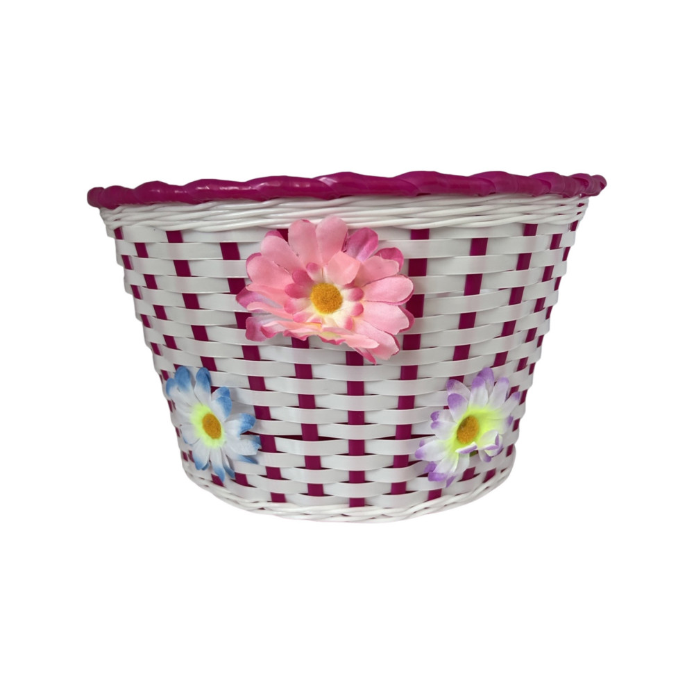 Detský plastový košík na riadidlá - bielo fialový s kvietkami