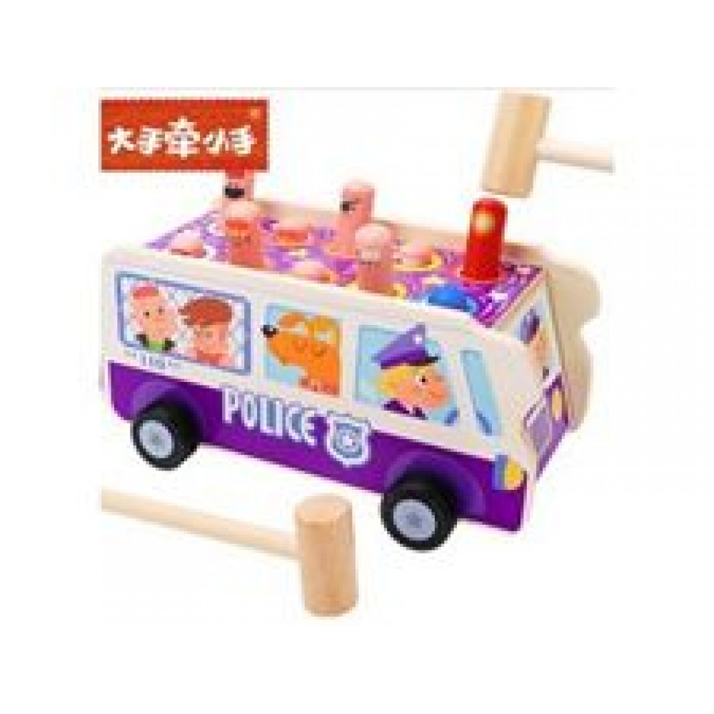 Drevená arkádová hra s kladivami - Policajný autobus