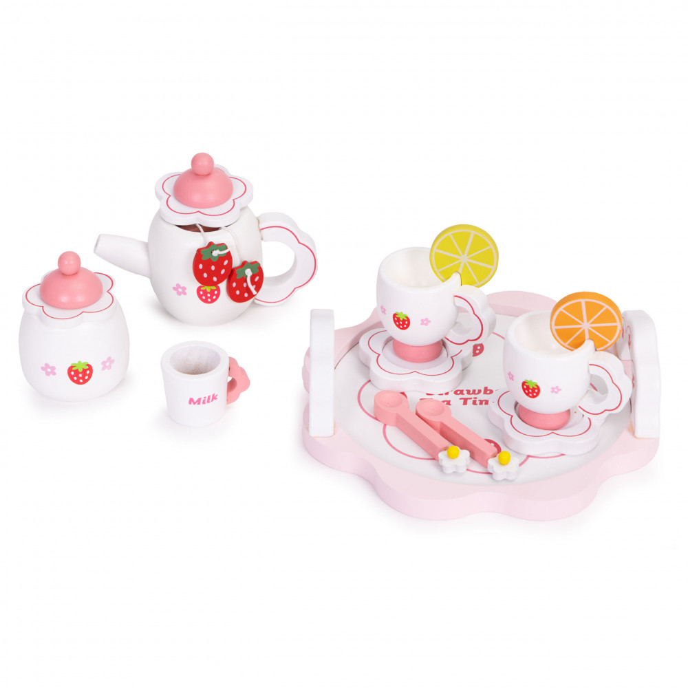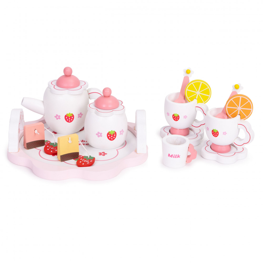 Drevená čajová súprava ECOTOYS je krásny spôsob, ako uviesť batoľa do sveta kreatívnej hry. Súprava sa skladá zo 14 starostlivo vyrobených dielov - od čajníka a šálok až po plátky citróna a nádobu na cukor. Dievčenský motív s jahodami priťahuje pozornosť a podnecuje predstavivosť. Dieťa môže pozvať rodinu, bábiky alebo plyšové hračky na popoludňajší čaj a prehrávať scénky, ktoré pomáhajú učiť hraniu rolí a empatii. Súprava je ideálna pre hračkársku kuchynku, kaviareň alebo obchod - ponúka veľa možností na hranie. Všetky diely sú vyrobené z prírodného, zdravotne nezávadného dreva, ktoré zaručuje estetiku a odolnosť. Je to skvelý spôsob, ako budovať vzťahy, rozvíjať predstavivosť a učiť sa priateľsky komunikovať.