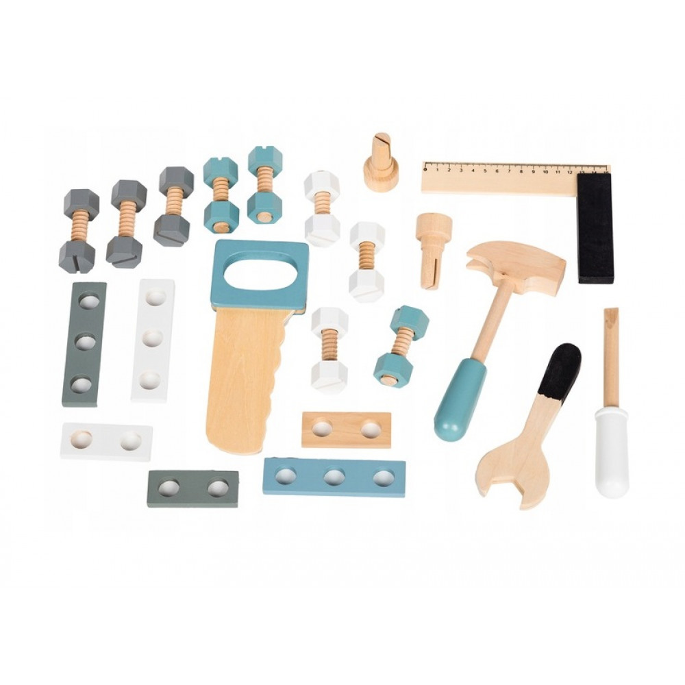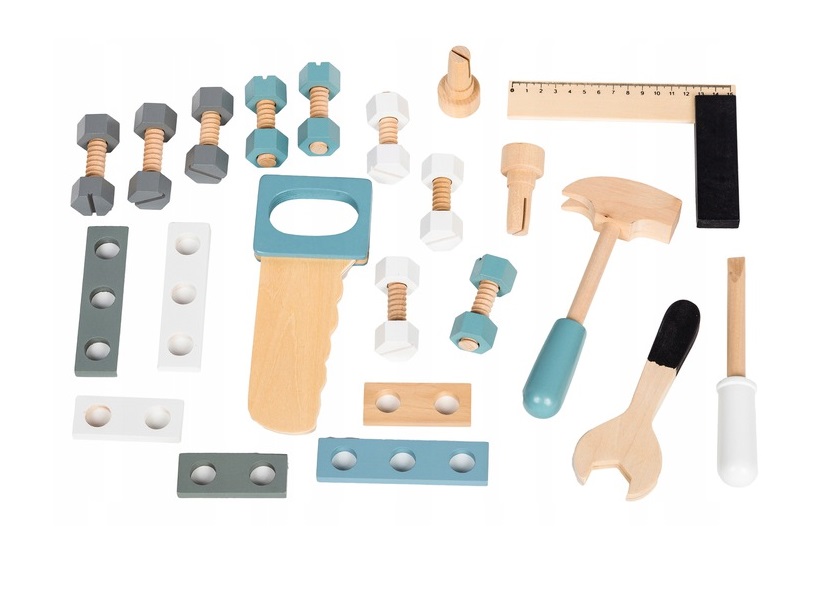 Aby bola kutilská zábava pre vaše dieťa zaujímavá, poskytli sme mu drevené nástroje, ktoré mu pomôžu naučiť sa ich funkcie.