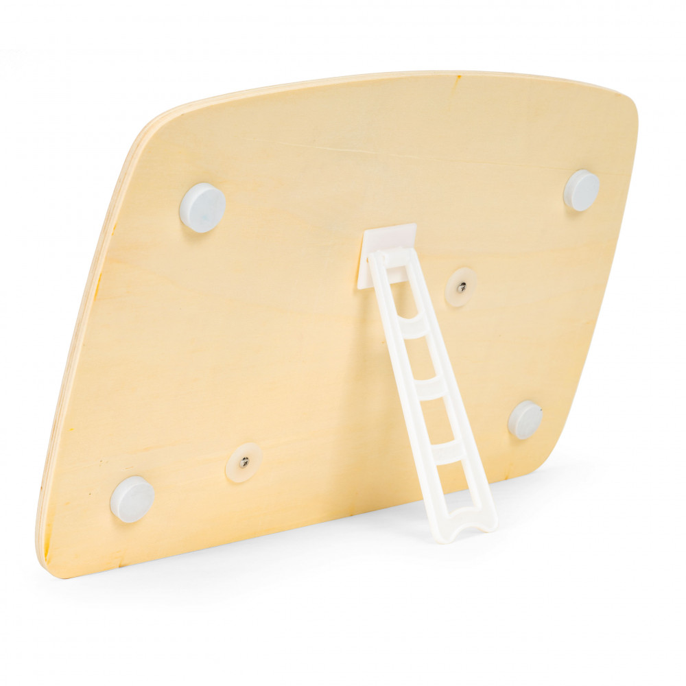 Doska má v zadnej časti podperu , ktorá umožňuje jej bezpečné položenie na pracovný stôl alebo stôl . Vďaka tomu sa tabuľa stáva nielen edukatívnou hračkou, ale aj praktickým kalendárom.