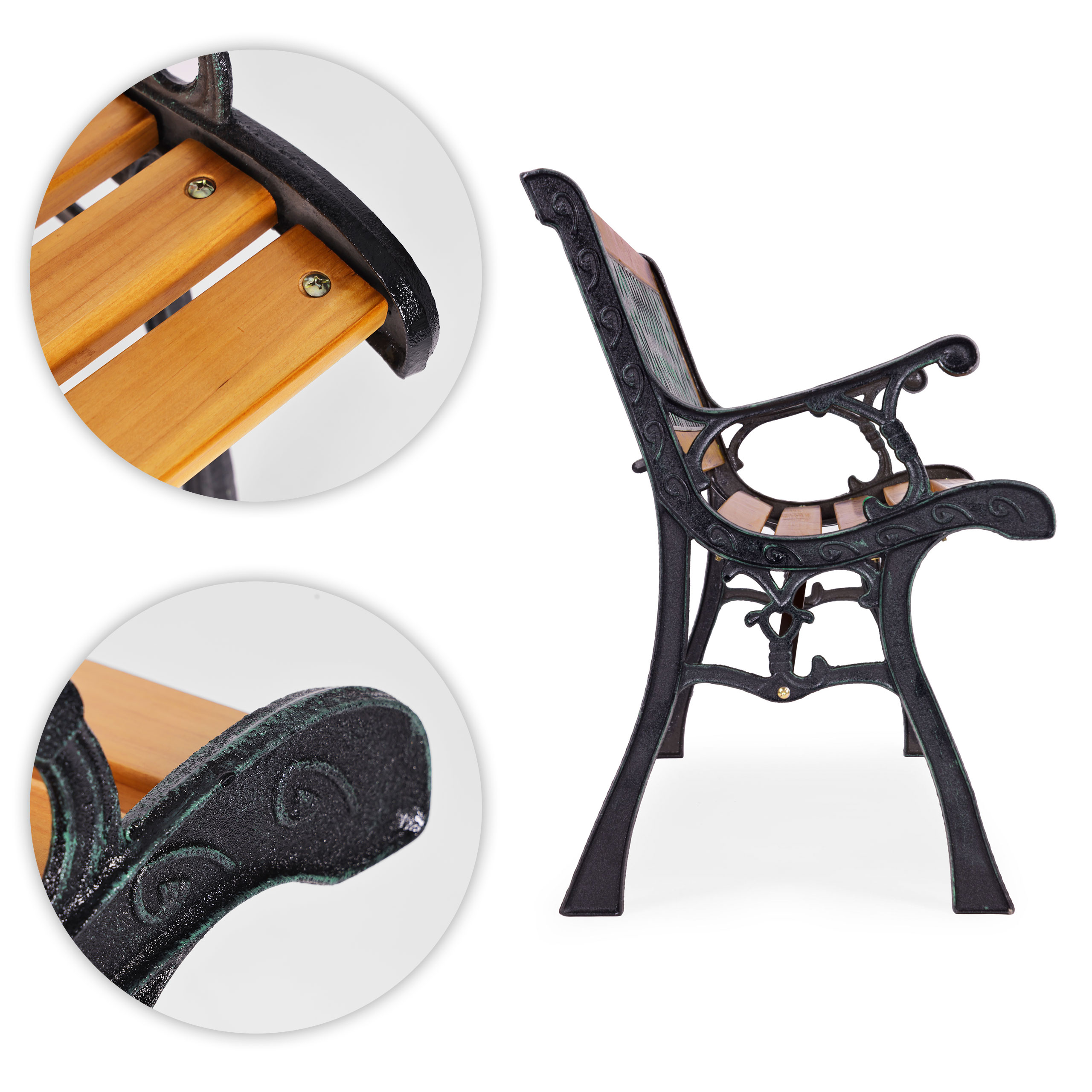 - Liatinové nohy zaisťujú stabilitu celej konštrukcie. Solídne vyhotovenie ovplyvňuje trvácnosť lavičky a istotu pri používaní, a to aj pri väčšom zaťažení a každodennom používaní.