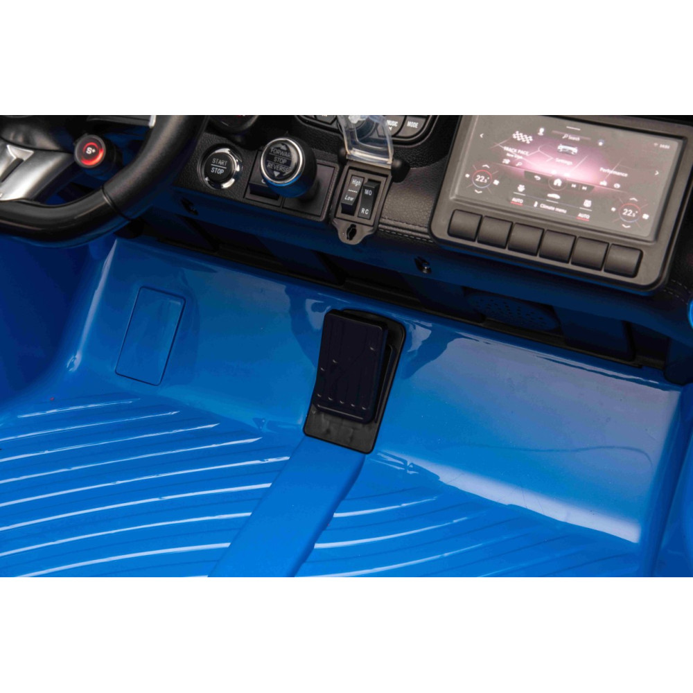 Audio Diaľkové ovládanie | USB, MP3, BLUETOOTH, predinštalované melódie, tlačidlá zvuku a klaksónu na volante, Nový typ panela MP4 s režimom SPORT (vozidlo vydáva zvuky pri stlačení plynového pedálu) 2,4 GHz, 3 rýchlosti, bezpečnostné tlačidlo STOP |