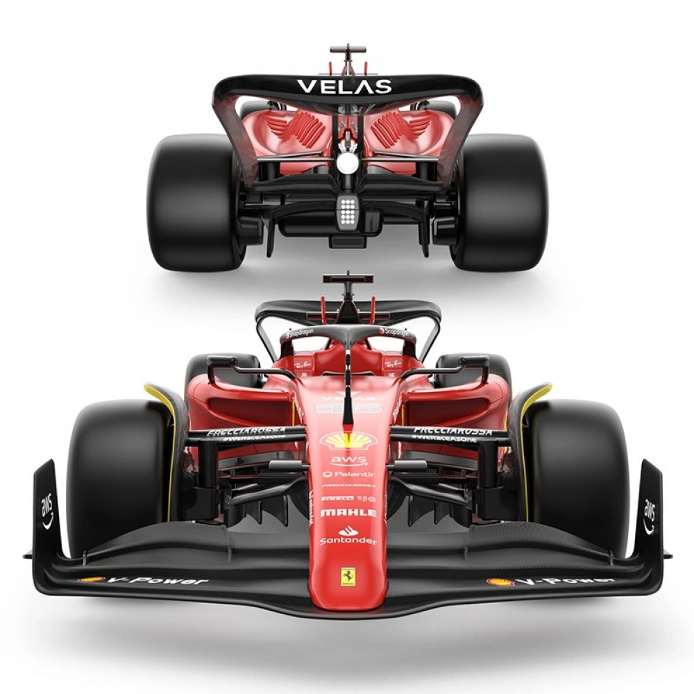 Realistická mierka 1:12 a dokonale reprodukovaný dizajn inšpirovaný vozidlom Ferrari F1-75. Vďaka ikonickému červenému laku, logám sponzorov a aerodynamickému tvaru model vyzerá ako skutočné pretekárske vozidlo zo sezóny F1.