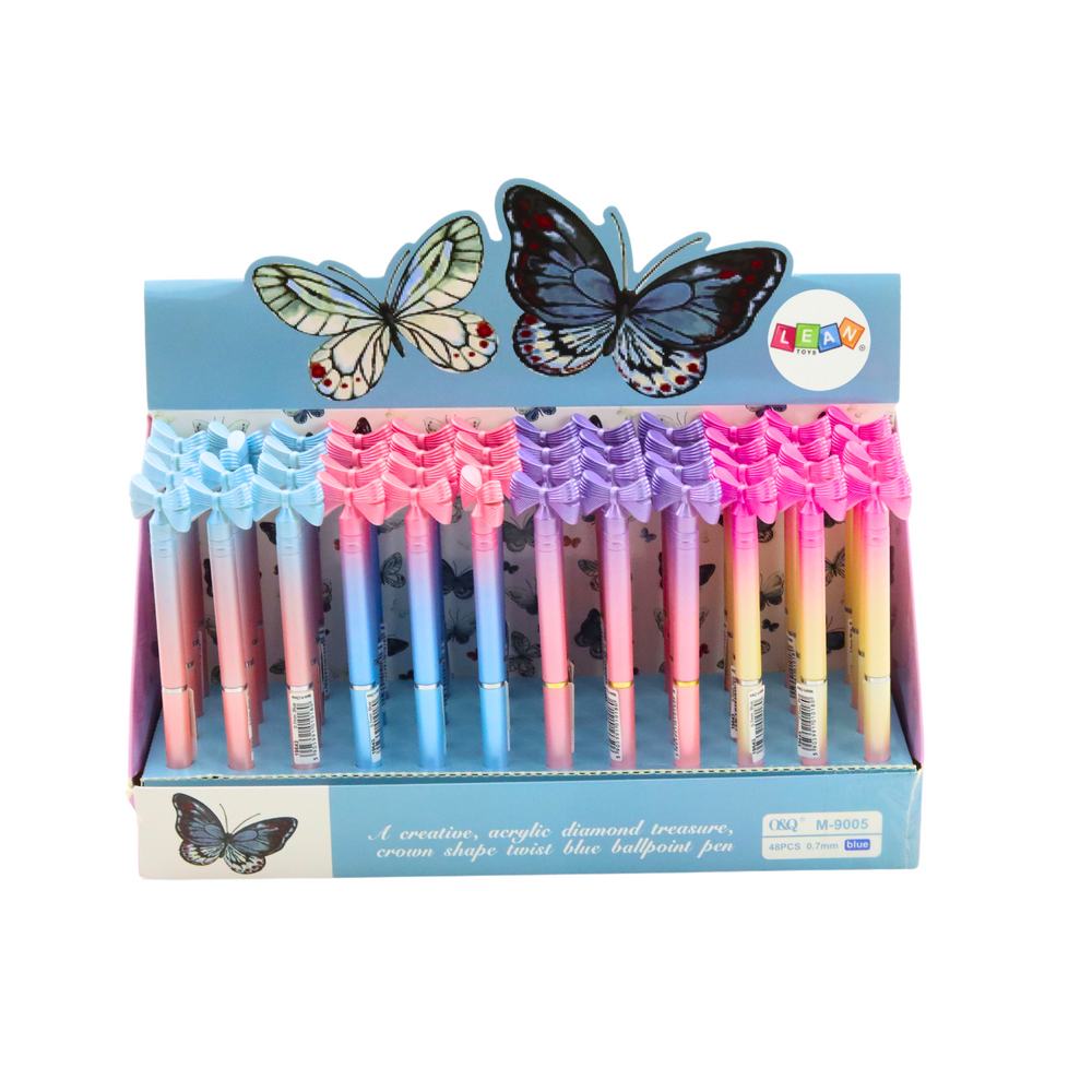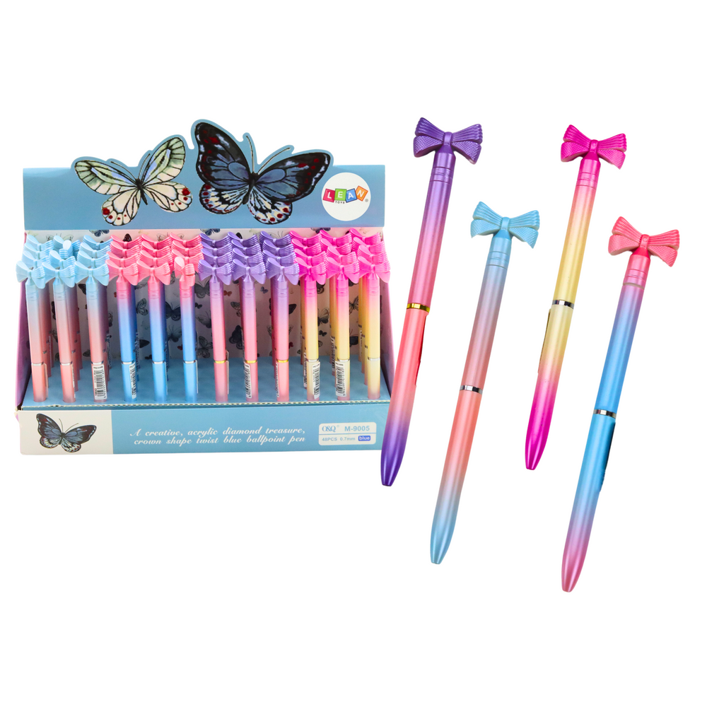 Guľôčkové farebné pero s mašličkou, modrá náplň 0,7 mm – mix