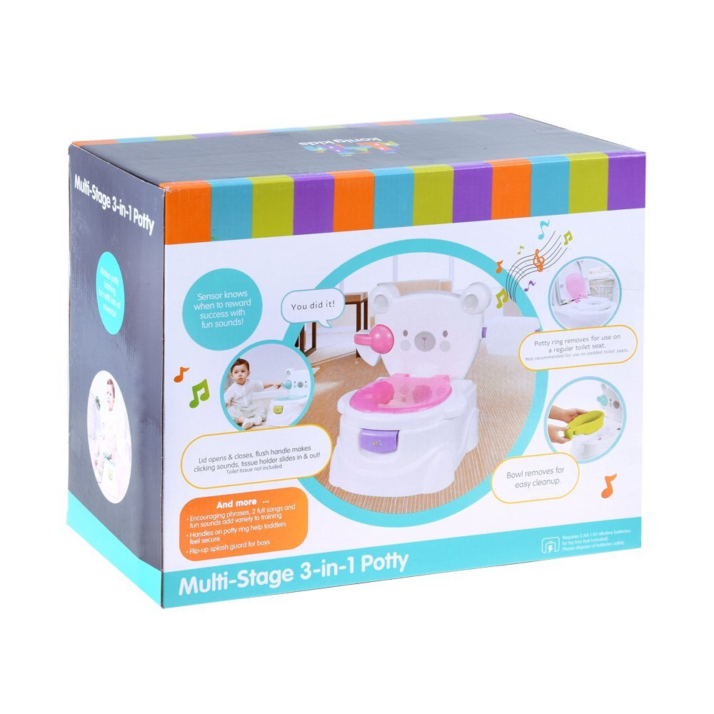 Multifunkčný nočník 3 v 1 pre deti je ideálnym vybavením na začatie výučby vášho dieťaťa, ako používať záchodík. Nočník má nainštalovaný senzor, ktorý po kontakte s kvapalinou spustí radostný zvuk. Nočník má držiak na toaletný papier.