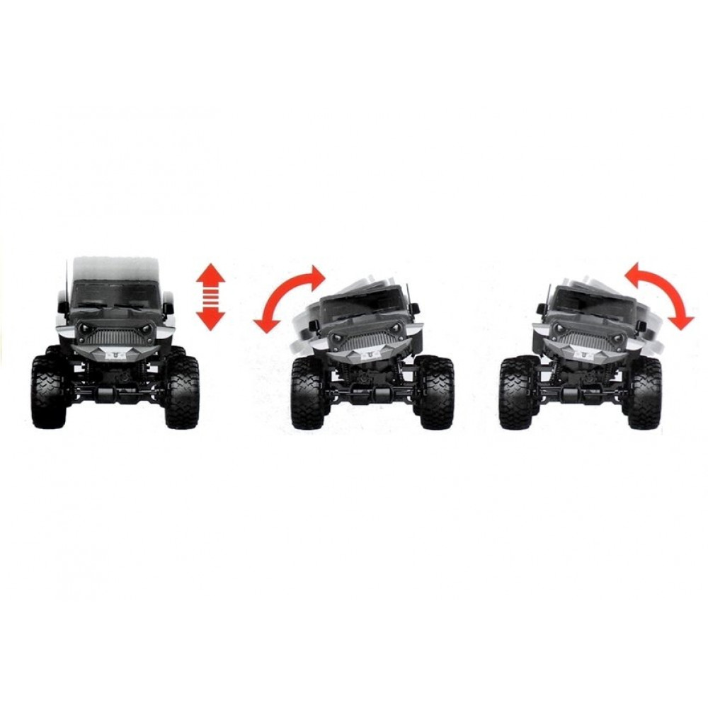 Veľké kolesá, tlmiče a terénna konštrukcia sú len niektoré z výhod tohto produktu. Mäkké gumené kolesá vozidla zaisťujú vysokú priľnavosť automobilu k rôznym typom povrchu a veľké tlmiče umožňujú prekonať ťažké prekážky.