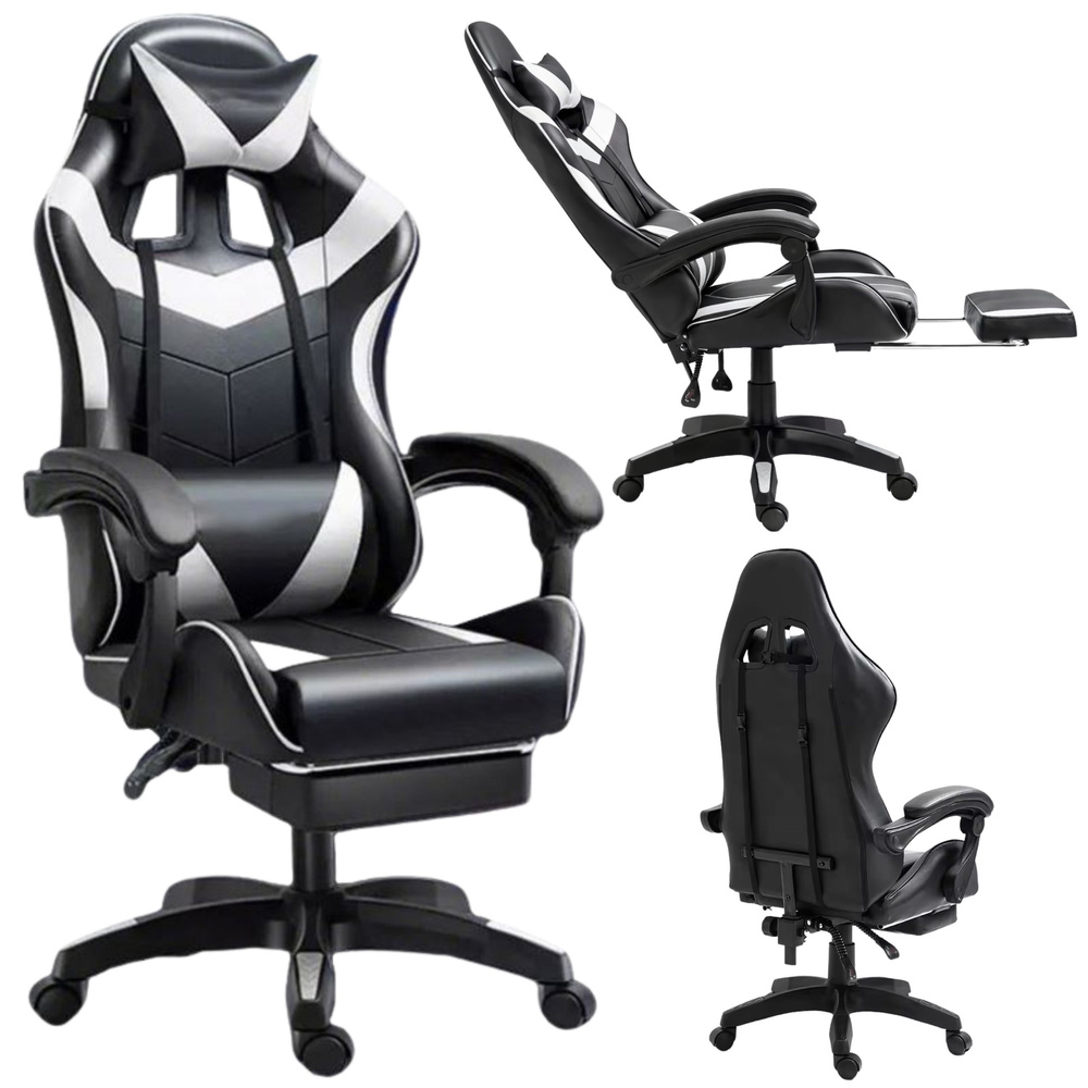 Kancelárska stolička s opierkou na nohy a vankúšmi – biela