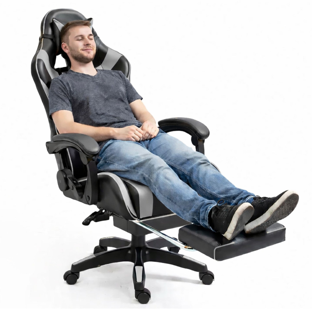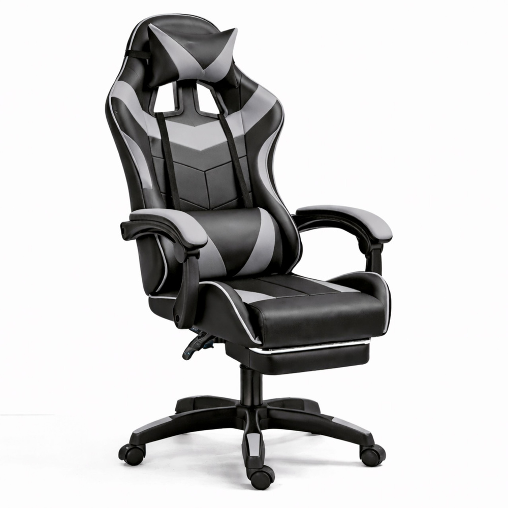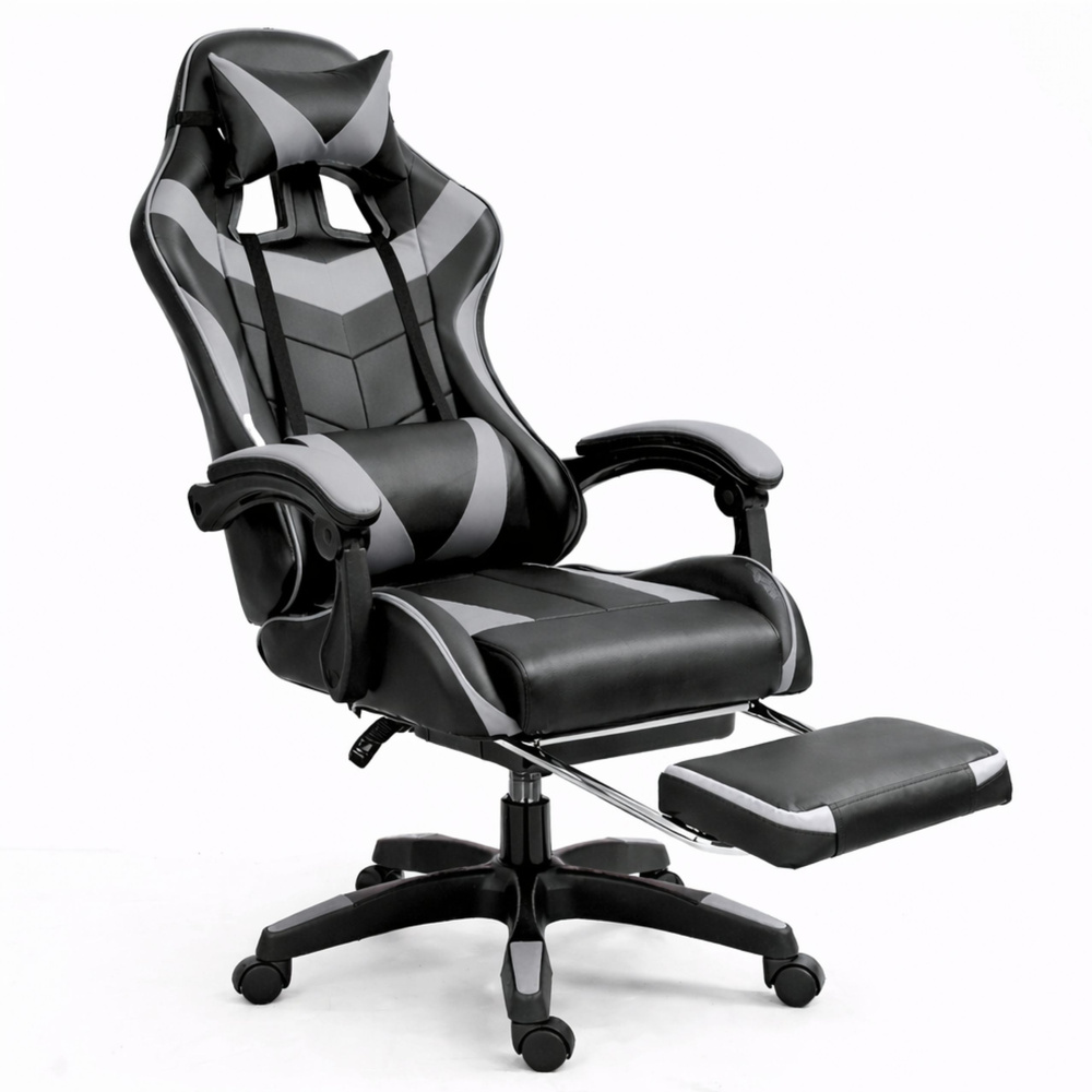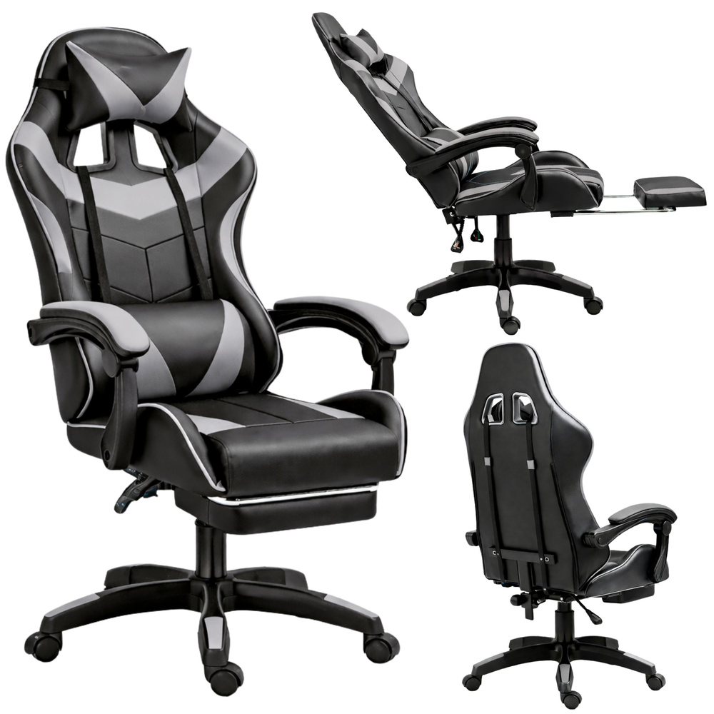 Kancelárska stolička s opierkou na nohy a vankúšmi – sivá