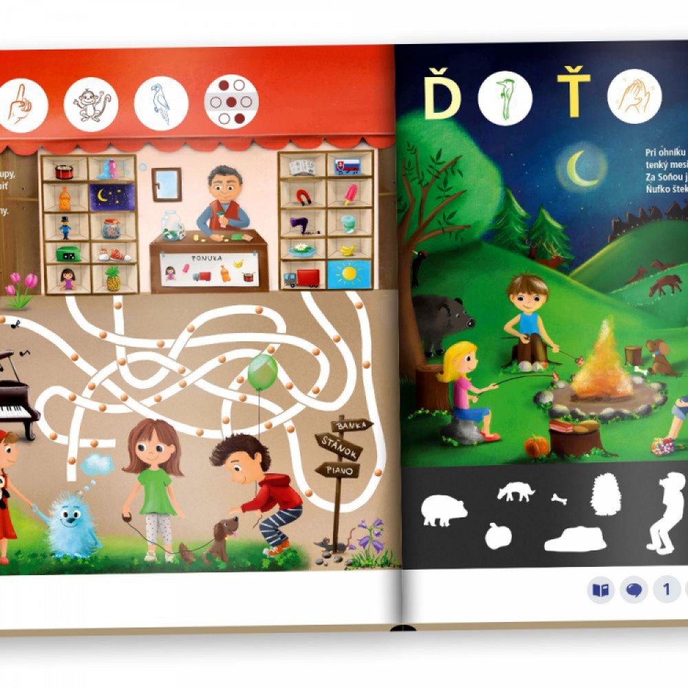 hlások D, T, N, L, Ď, Ť, Ň, Ľ a R. V knižke nájdete krásne ilustrácie, ktoré