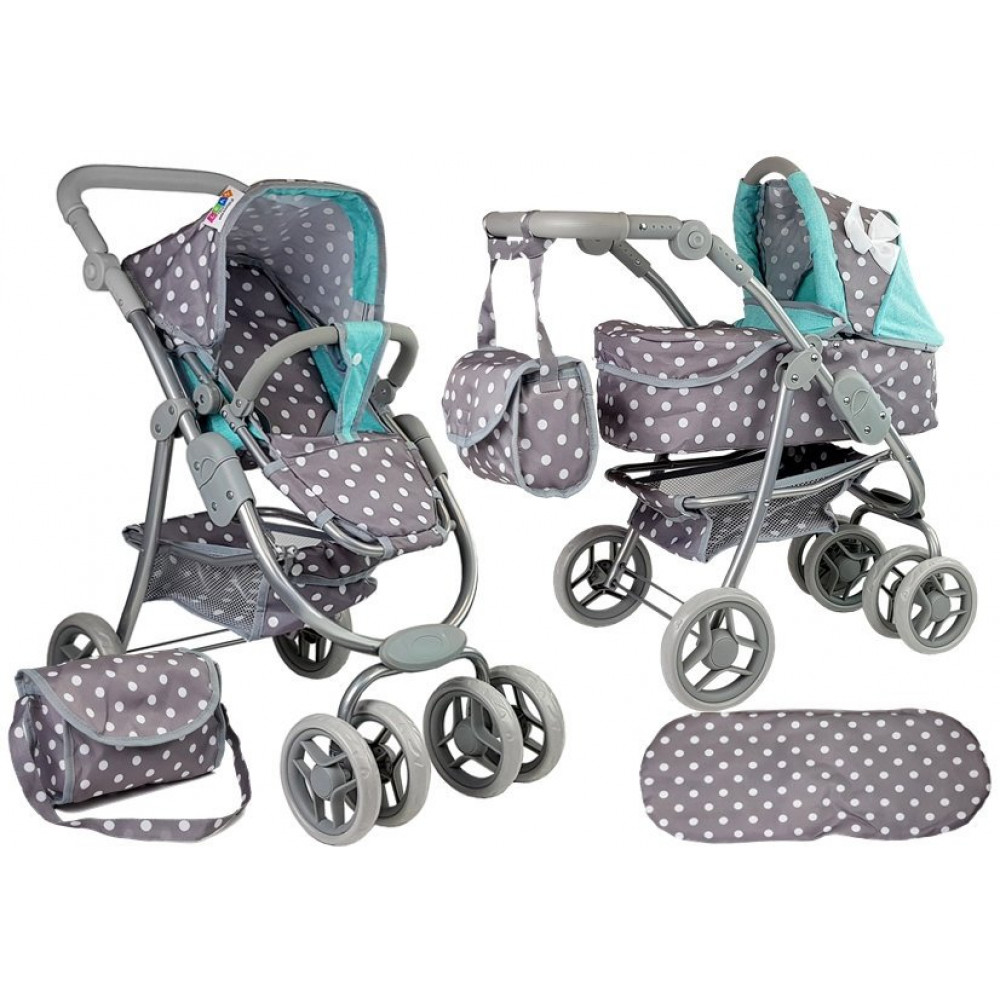 Kočík pre bábiky Alice 2v1 sivo – tyrkysový