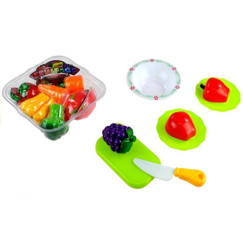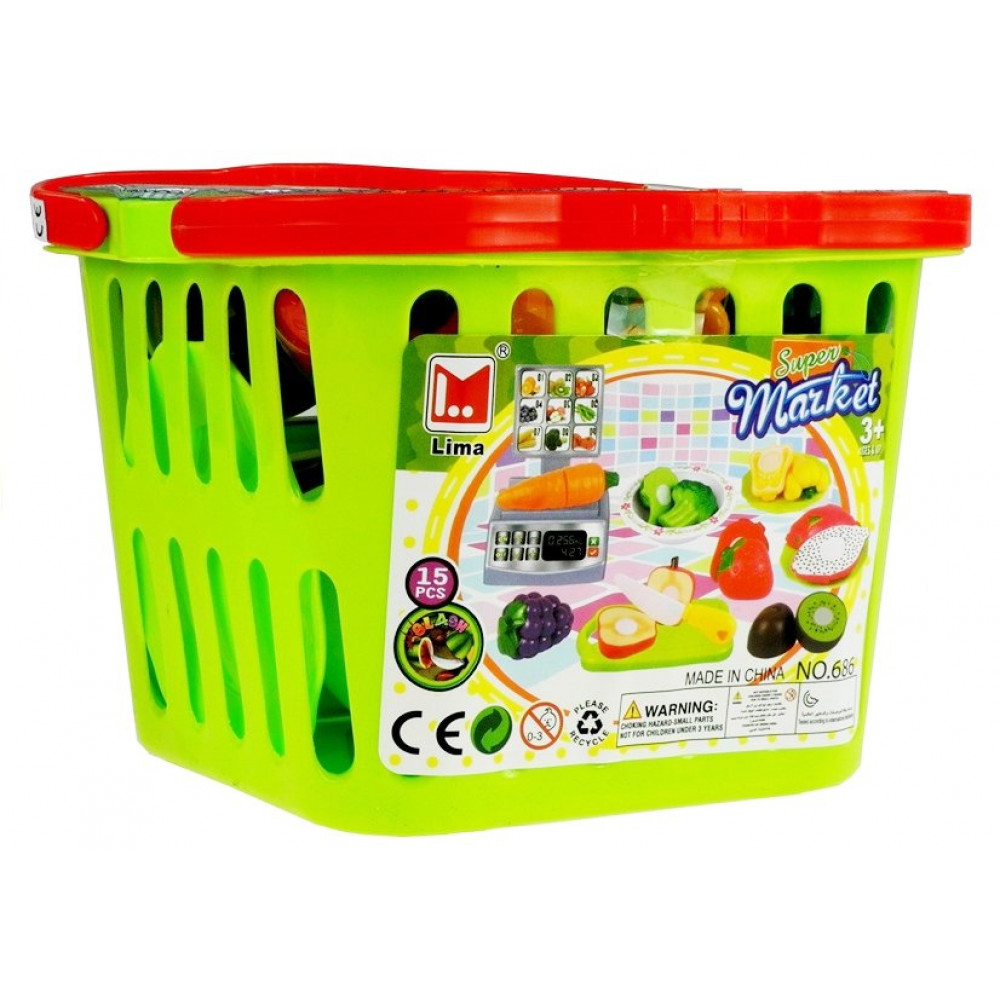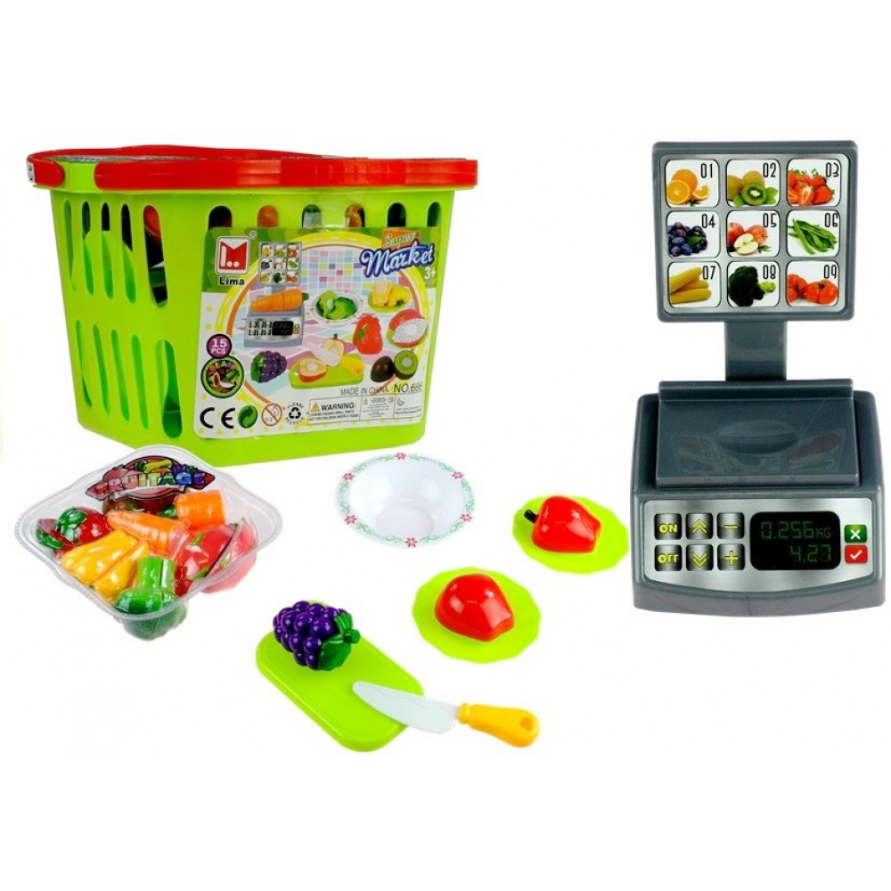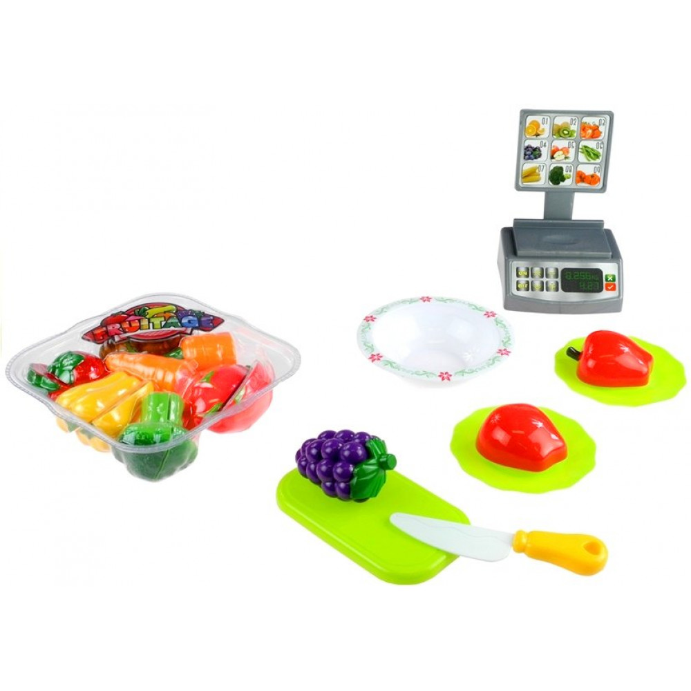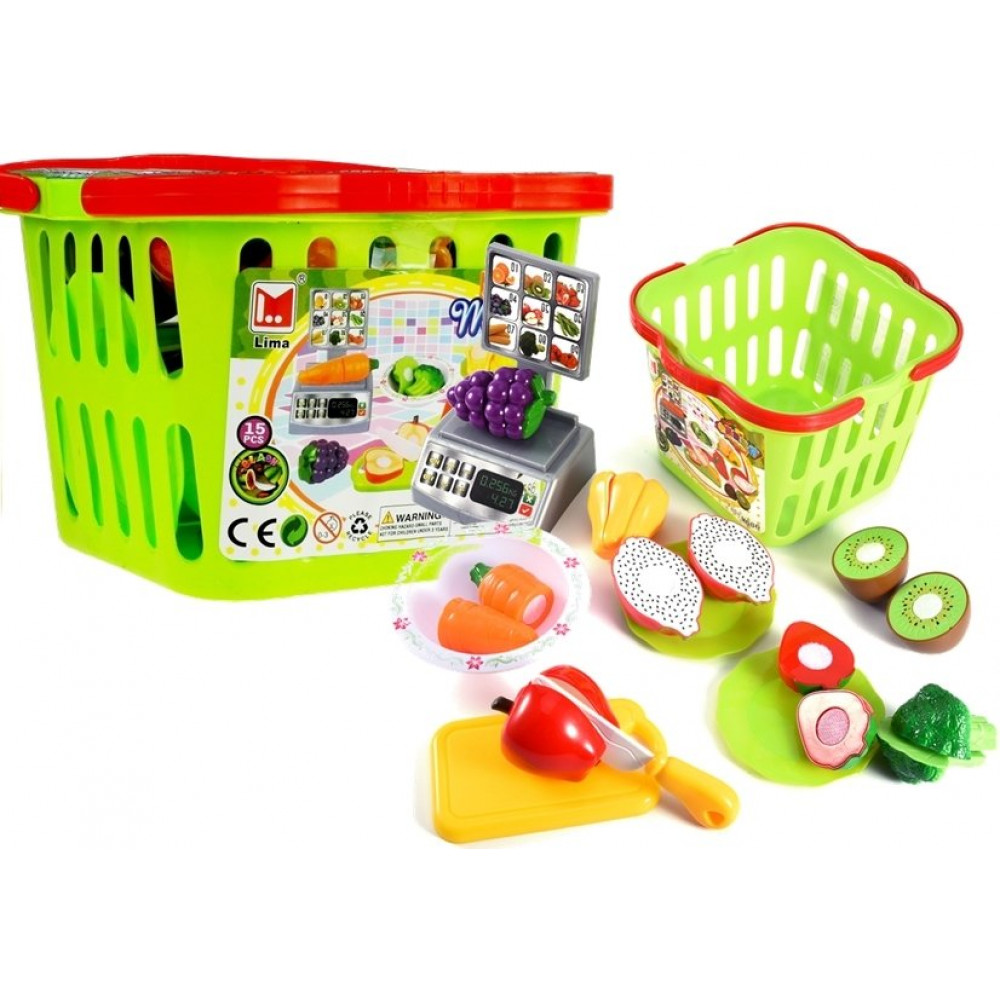 Súprava sa skladá zo zeleného koša naplneného rôznymi druhmi zeleniny a ovocia, ako aj z misky, tanierov, nožov, doštičiek a váh. Na určenej doske môžete rozložiť jedlo a rezať ho špeciálnym nožom. Polovice ovocia a zeleniny sa môžu odvážiť podľa hmotnosti, čo je verné zobrazenie tých, ktoré sa nachádzajú v supermarketoch, a potom ich umiestnite na taniere alebo ich zmiešajte v miske. Po ochutnaní jednoduchým a rýchlym spôsobom polovice ovocia a zeleniny môžete pripojiť spolu navzájom. Ako? Všetky potraviny majú špeciálny suchý zips , ktorý umožňuje ich mnohonásobné oddelenie a kombinovanie.
