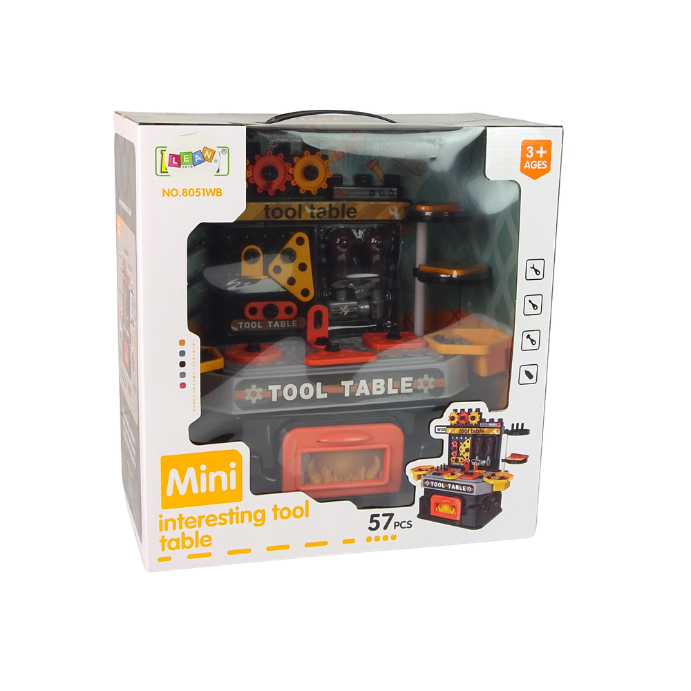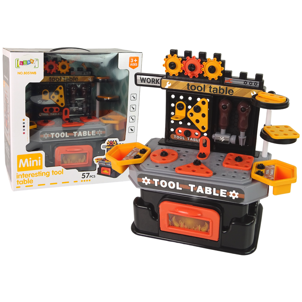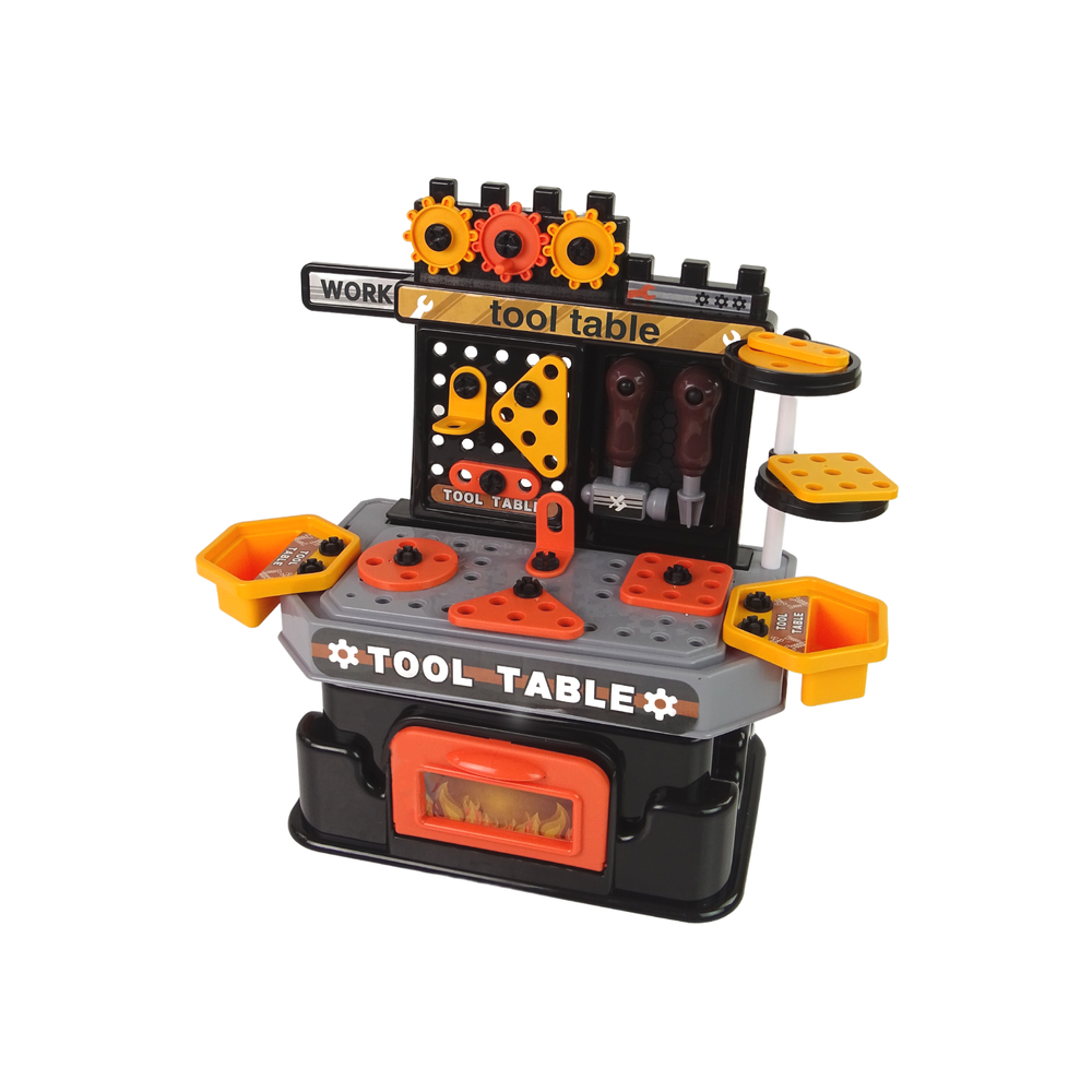 kompletná dielňa je vyrobená z plastu v oranžovo čiernej farbe.