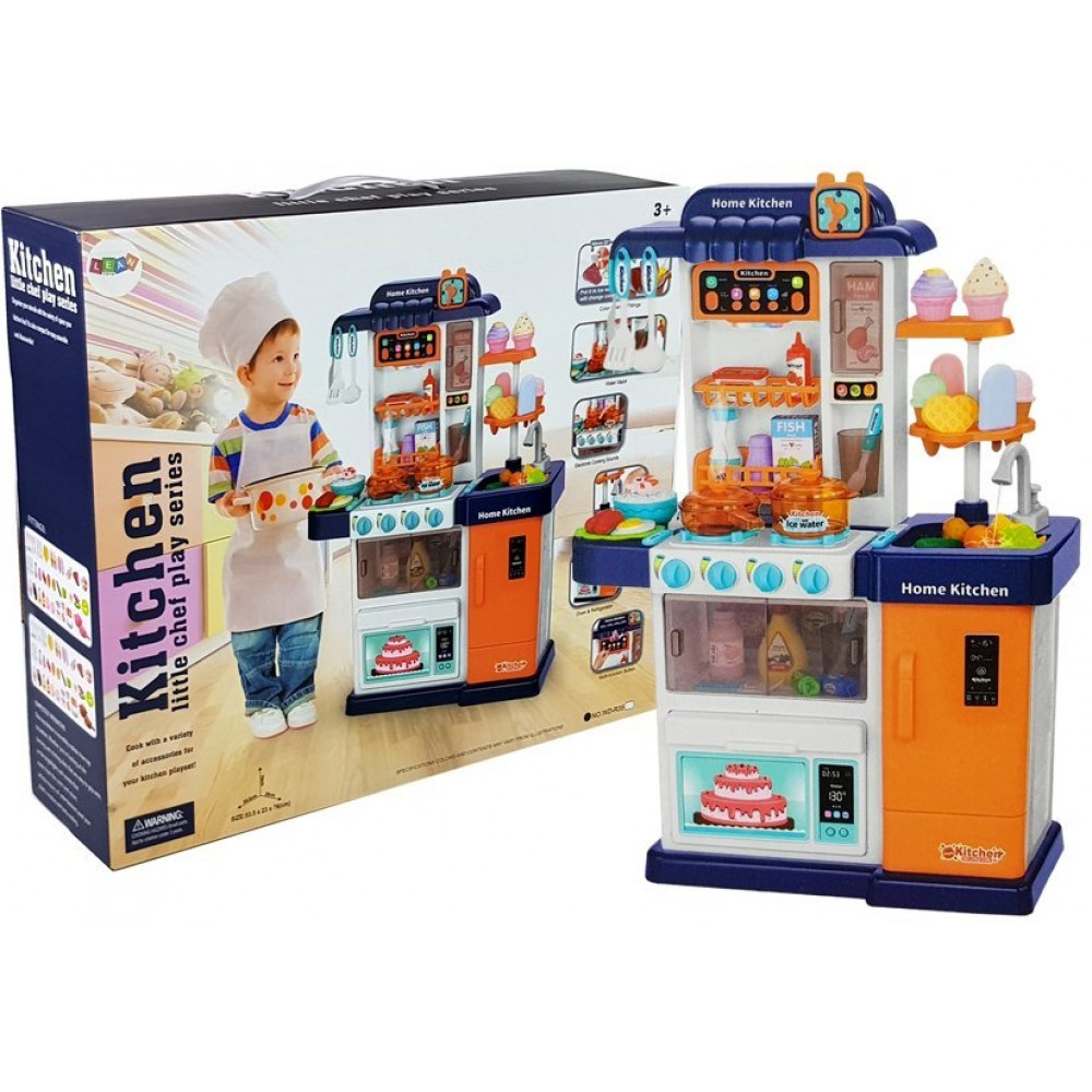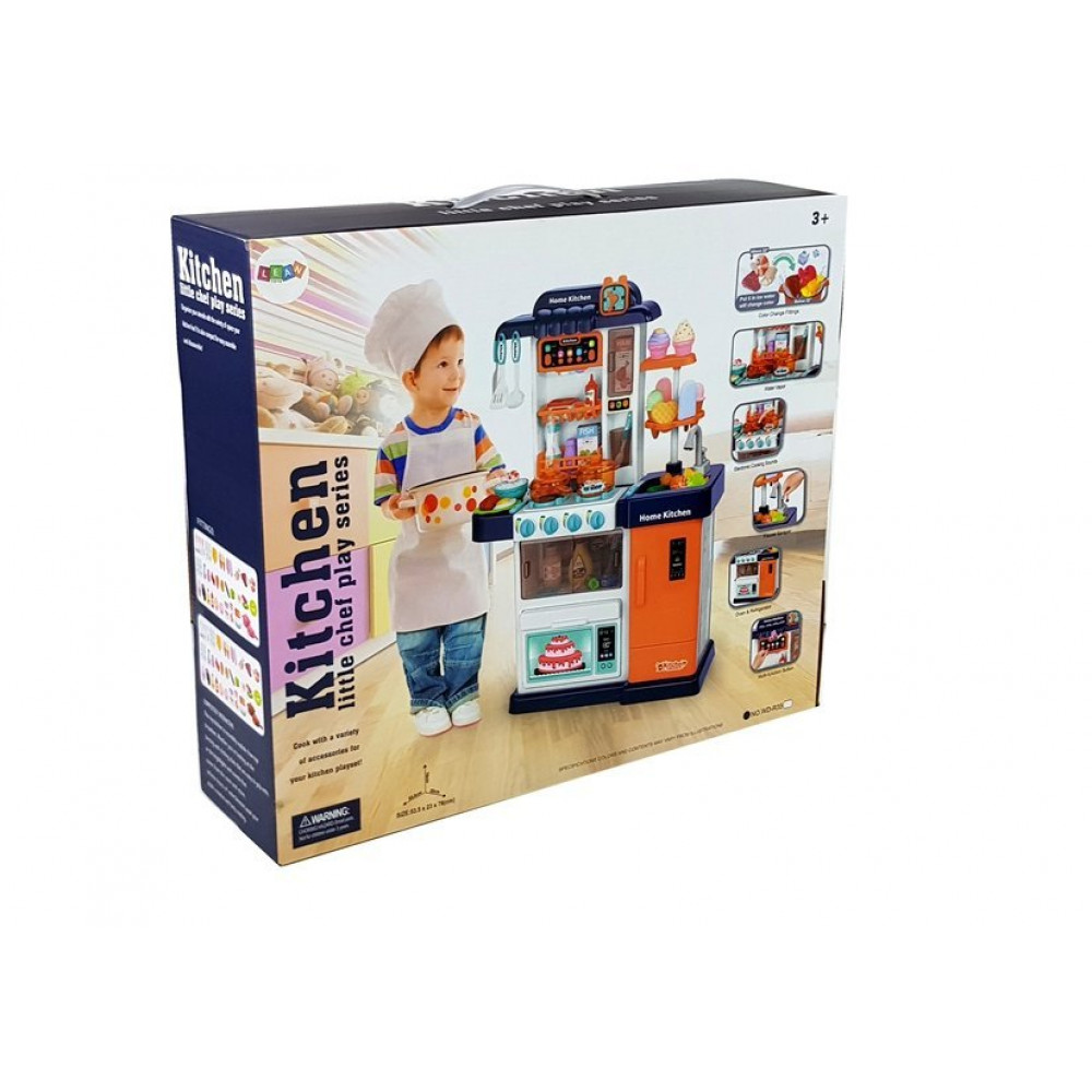 Špeciálne pre mladých kuchárov ponúkame kuchyňu v modernom štýle. Je to zaujímavá a návyková hra pre deti, ktoré túžia napodobňovať aktivity dospelých. Voda vytekajúca z kohútika poskytuje deťom skutočný zážitok pri umývaní ovocia alebo riadu a para zatraktívni prípravu každého pokrmu. V kuchyni sú dve varné platne a štyri gombíky. Oba horáky vydávajú zvuky a svetlo. V kuchyni je digestor so svetlom a zvukom, ktorý má až 12 melódií. Na pravej strane je tlačidlo, ktoré zapína digestor. Po zapnutí sa rozsvietia svetlá. Digestor má tiež dvojstupňové ovládanie hlasitosti.