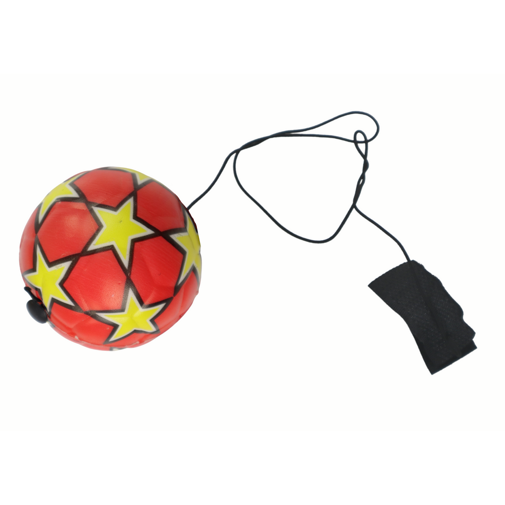 Na lopte je pripevnená pružná, čierna gumička zakončená praktickým náramkom na