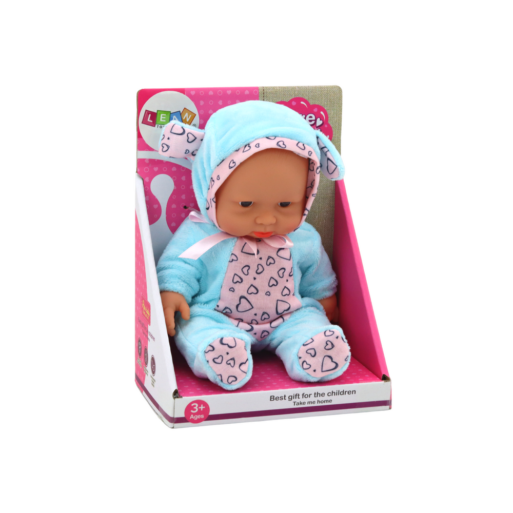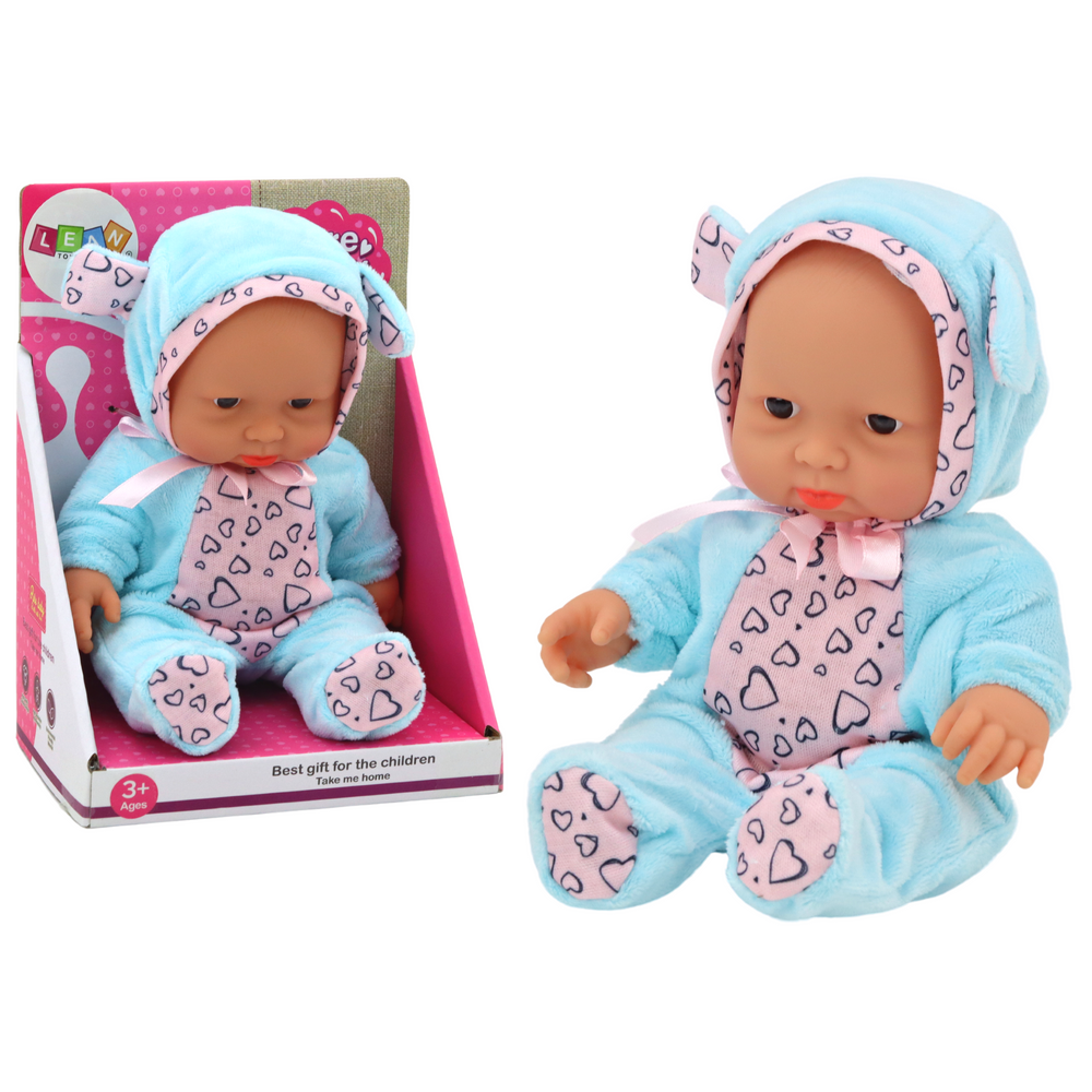 Malá bábika v modrom oblečení s uškami