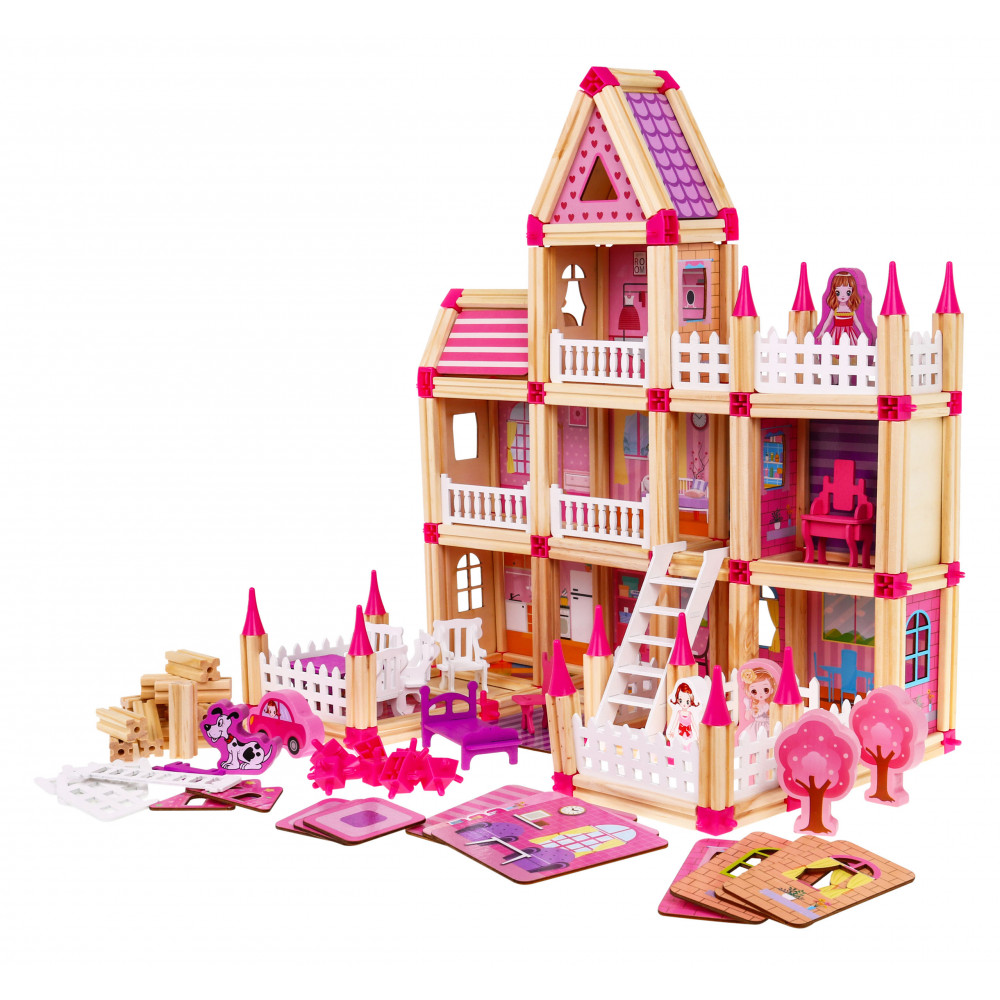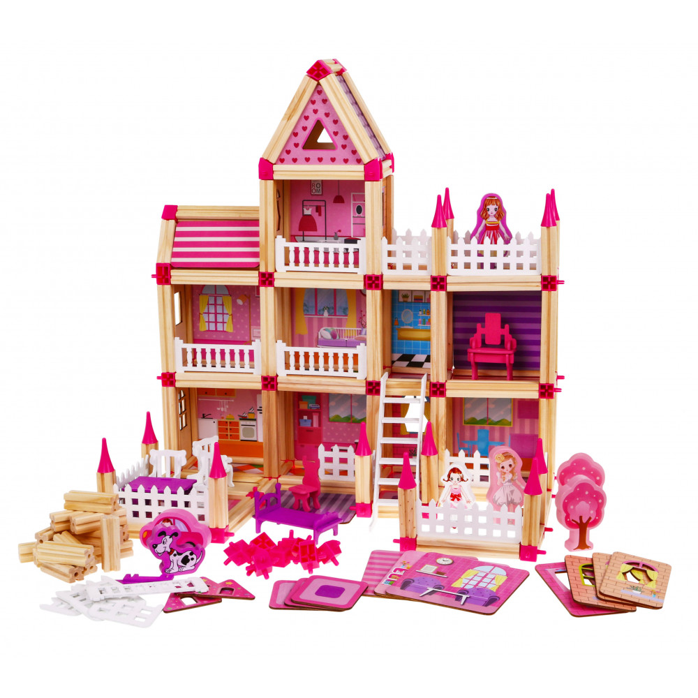 pozostáva z 298 prvkov, ktoré po rozložení tvoria drevený domčeky pre