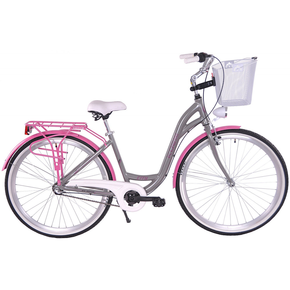 Mestský hliníkový bicykel 28" Kozbike 28K07-S3 3 prevodový Sivo-ružový + košík a výstelka