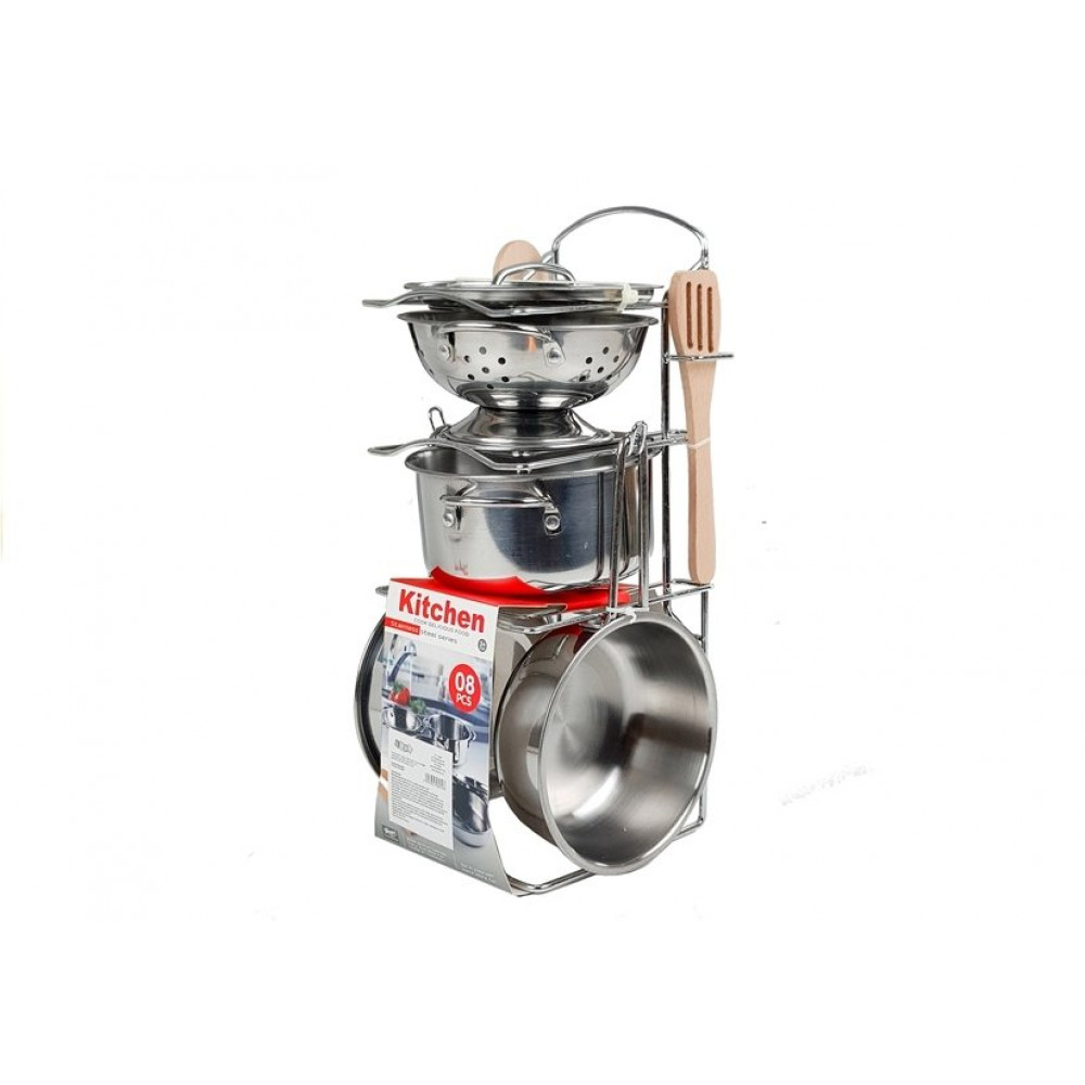 Súprava, ktorú predstavujeme, pozostáva z lesklého, kovového, strieborného tovaru, ktorý okrem iného zahŕňa hrniec, panvicu alebo sitko. Množstvo prvkov umožňuje zábavu, počas ktorej môžu deti predstierať, že pripravujú chutné pokrmy, a tiež slúžiť svojim rodičom, ako aj bábikám.