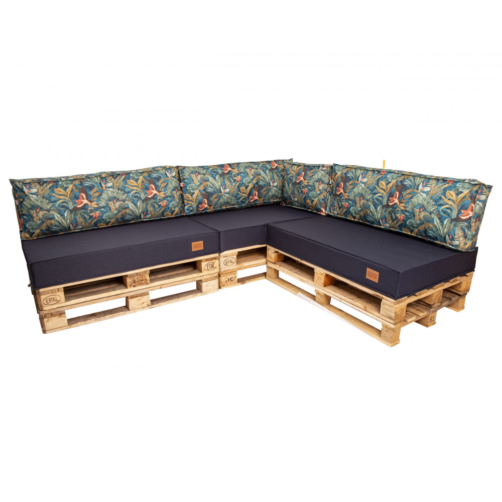 Paletové sedenie Golden Garden GG07 - Podsedáky a Vankúše 3ks × 120/80/15 + 3ks x 120cm/40cm/15cm + 1ks 60/40/15 - modrá / vtáčiky