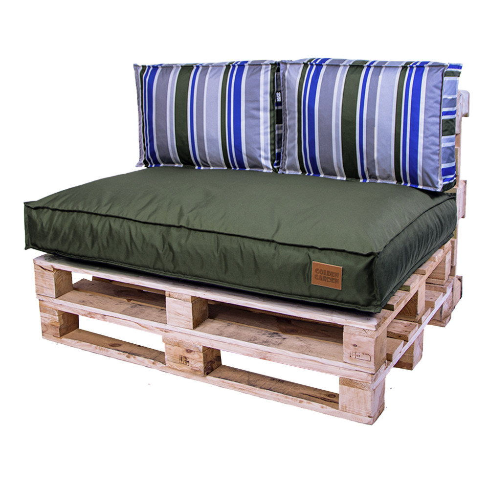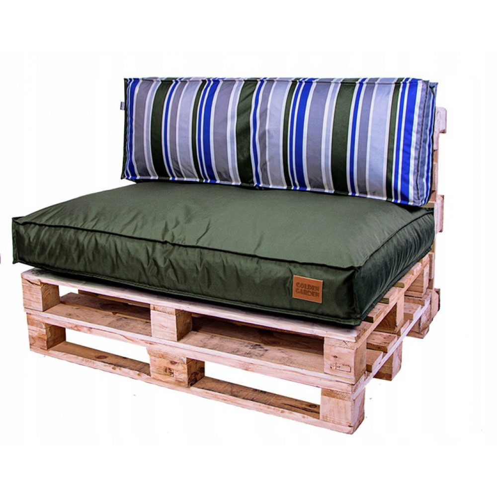 Paletové sedenie Golden Garden GG80 - podsedák a vankúš 120cm x 80cm x 15cm penový granulát olivová s pásmi 1