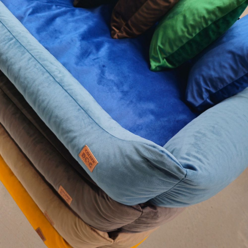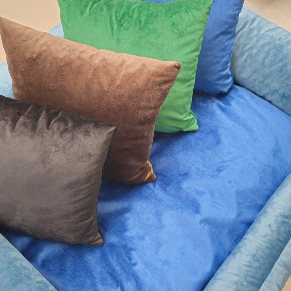Súčasťou sady je aj modrý vankúšik. Pelech je odolný voči poškodeniu. Ideálny