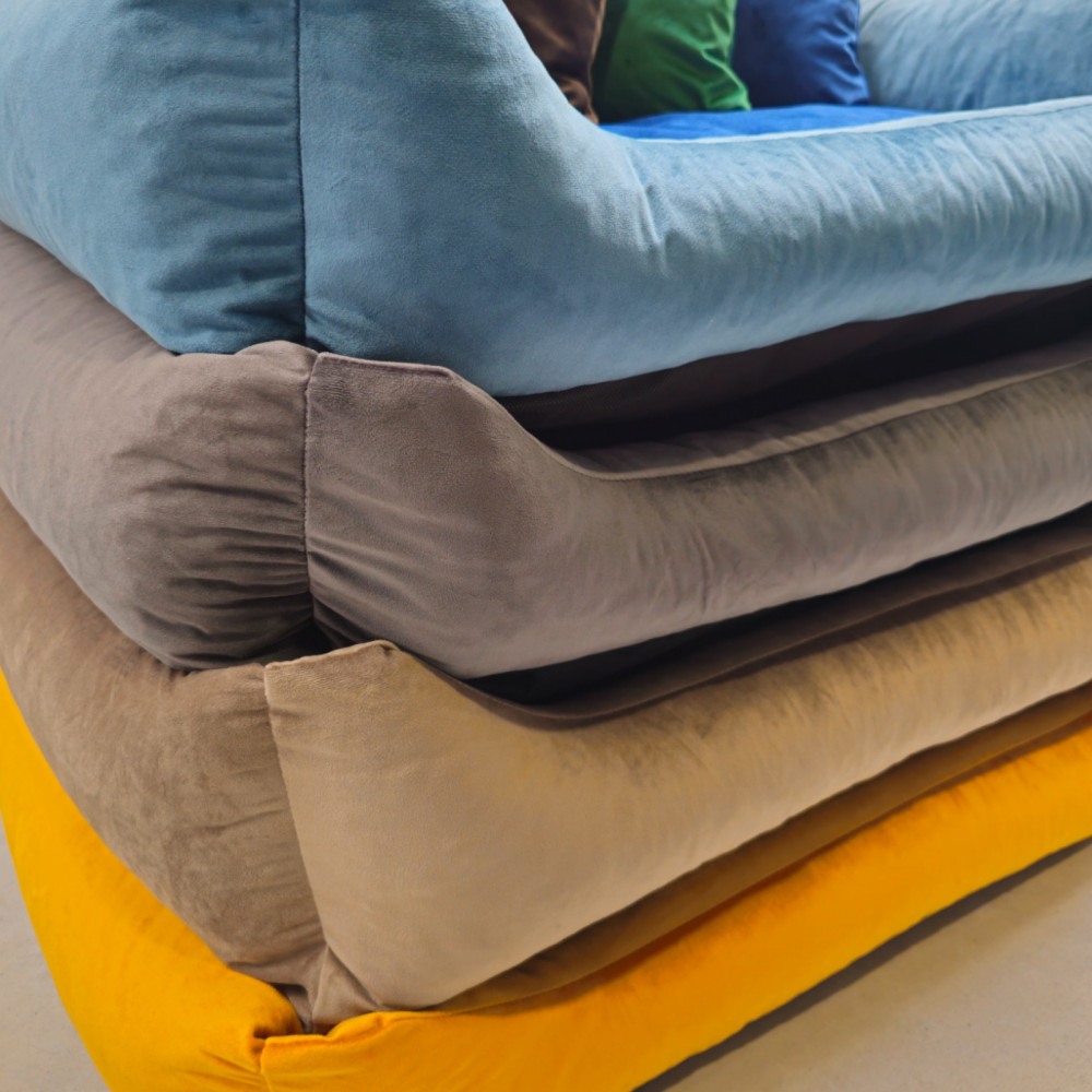 sa skladá z bokov a dna vyplneného penovými granulátovými vložkami. Pelech má