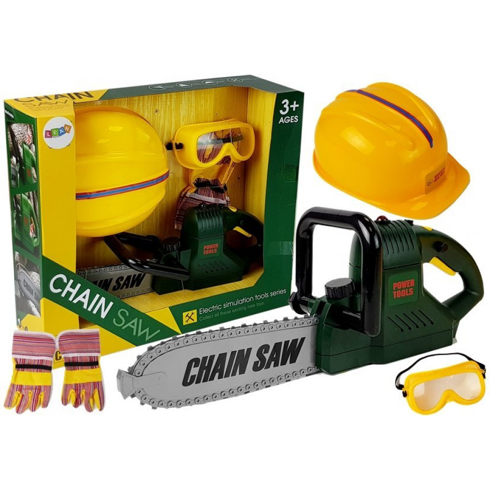 Pilčícka sada - píla, prilba, rukavice, okuliare - žlto-zelená
