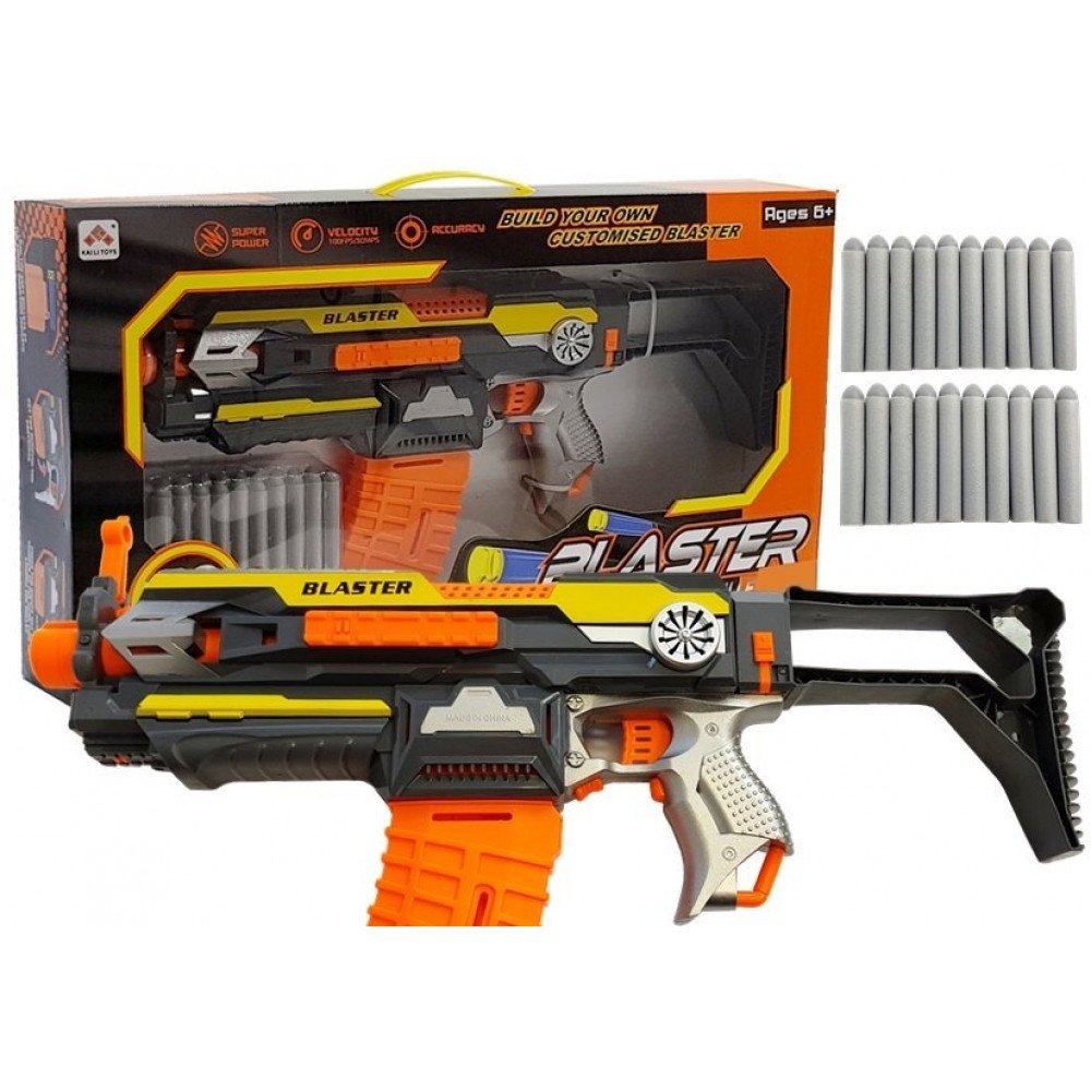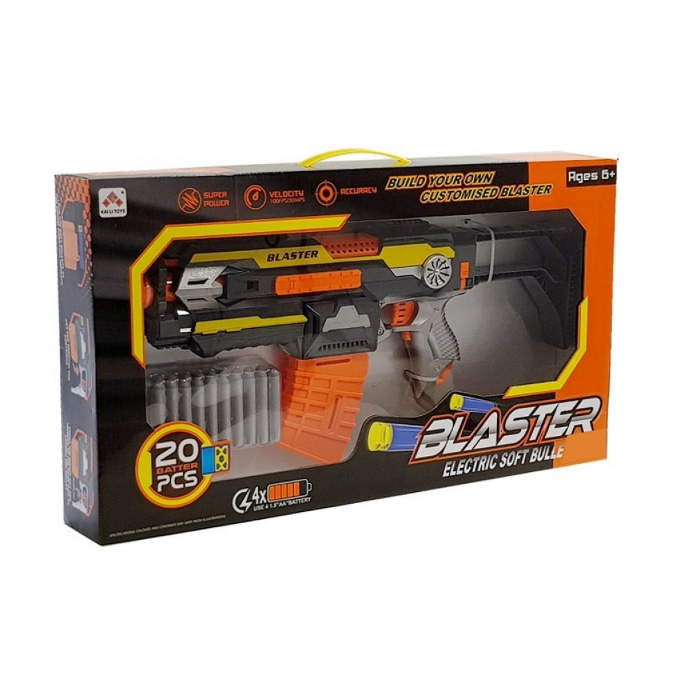 Zbraň má penovú muníciu a bola vyrobená z certifikovaného materiálu, čo znižuje pravdepodobnosť akýchkoľvek zranení, prídavné náboje nemajú ostré hrany. Má odnímateľný zásobník na náboje. Jeho obsluha je veľmi jednoduchá, stačí vložiť batérie, nabiť a stlačiť spúšť.