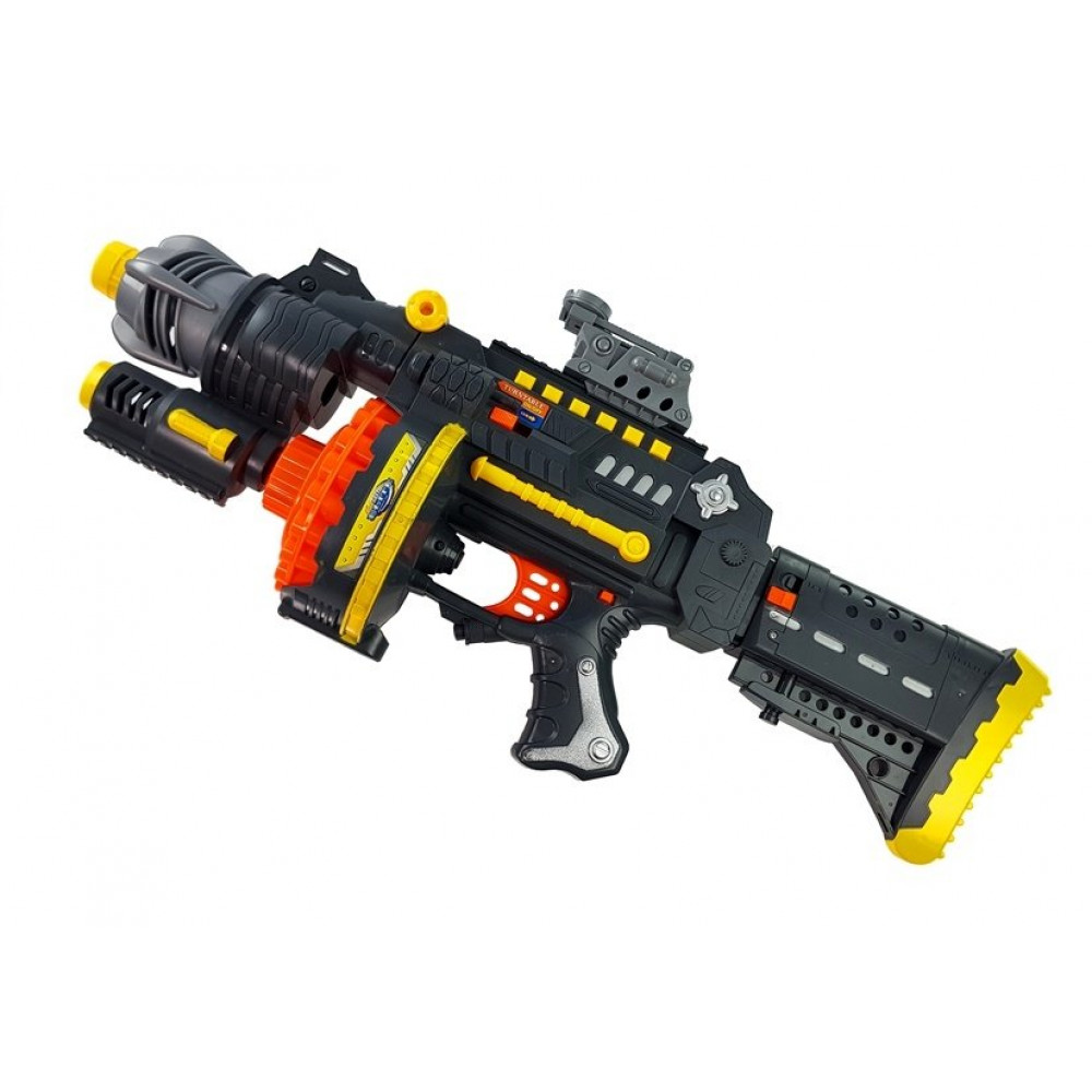 Pištoľ s penovými nábojmi a štítom čierno-žltá