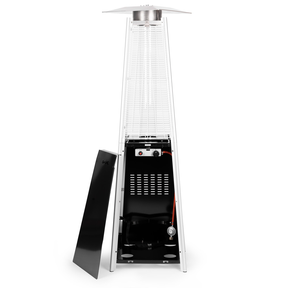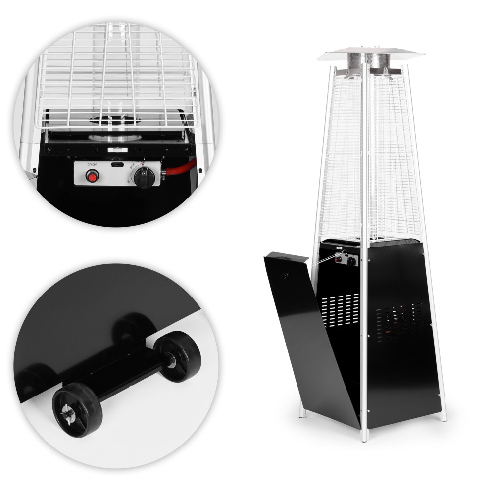 Ohrievač sa vyznačuje efektným spôsobom horenia – vysokým plameňom, ktorý vytvára výnimočnú atmosféru.Sklenený, podlhovastý kryt nielen zvyšuje bezpečnosť tým, že chráni plameň pred vetrom, ale tiež dodáva zariadeniu elegantný vzhľad. Trojuholníkový tvar a vysoká konštrukcia, ktorá odhaľuje plameň zo všetkých strán ohrievacieho dáždnika , upúta pozornosť každého hosťa a navyše zabezpečuje, že teplo sa šíri do všetkých strán a rovnomerne ohrieva okolie.
