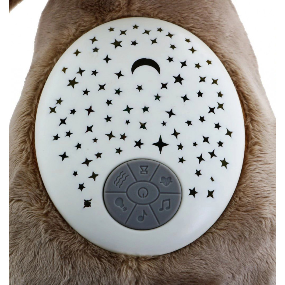 Hračka z mäkkého plyšu v sivej farbe s ružovými uškami. Projektor je z hračky úplne odnímateľný, čo výrazne uľahčuje čistenie a udržiava ju čistú.