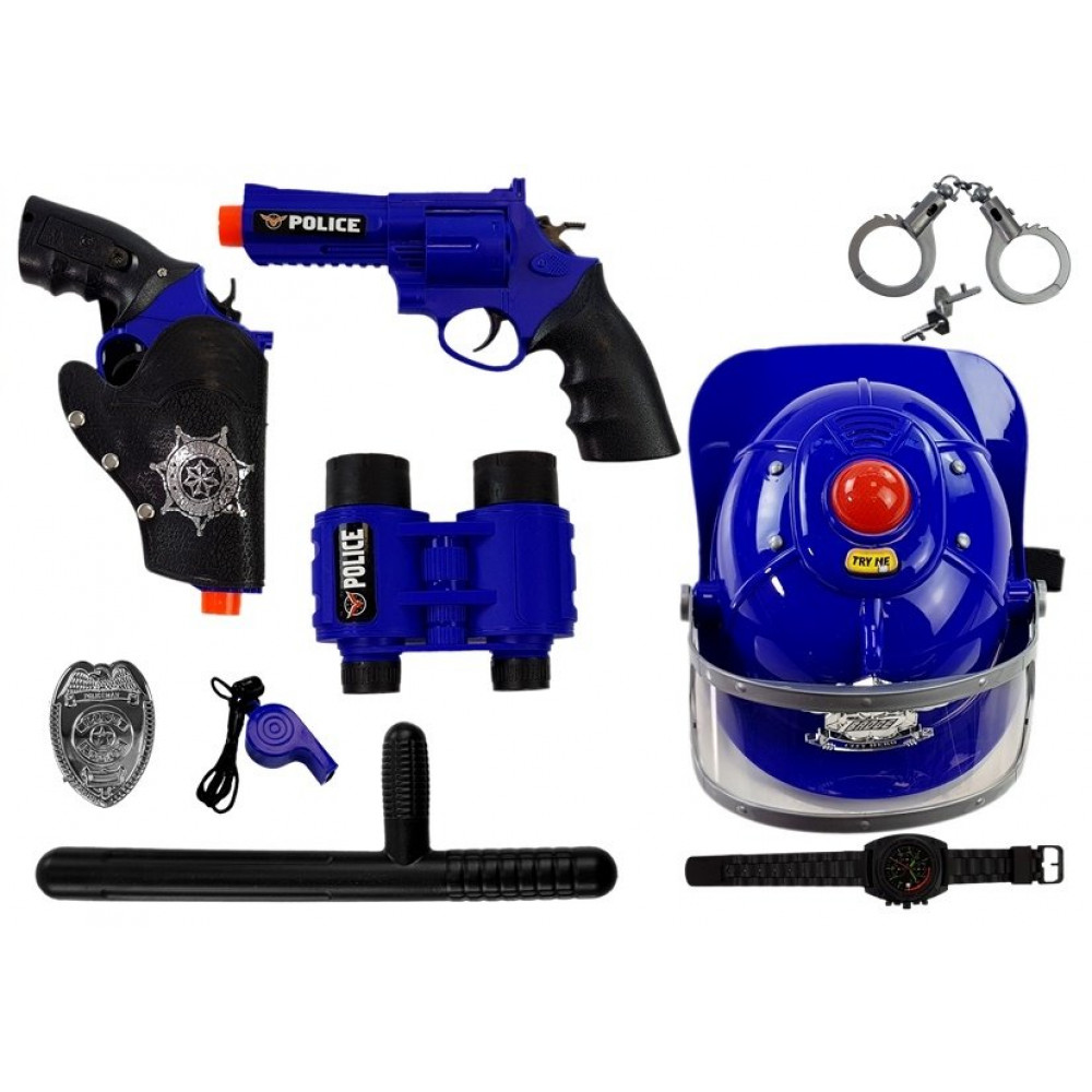 Policajná sada s príslušenstvom s prilbou modro-čierna