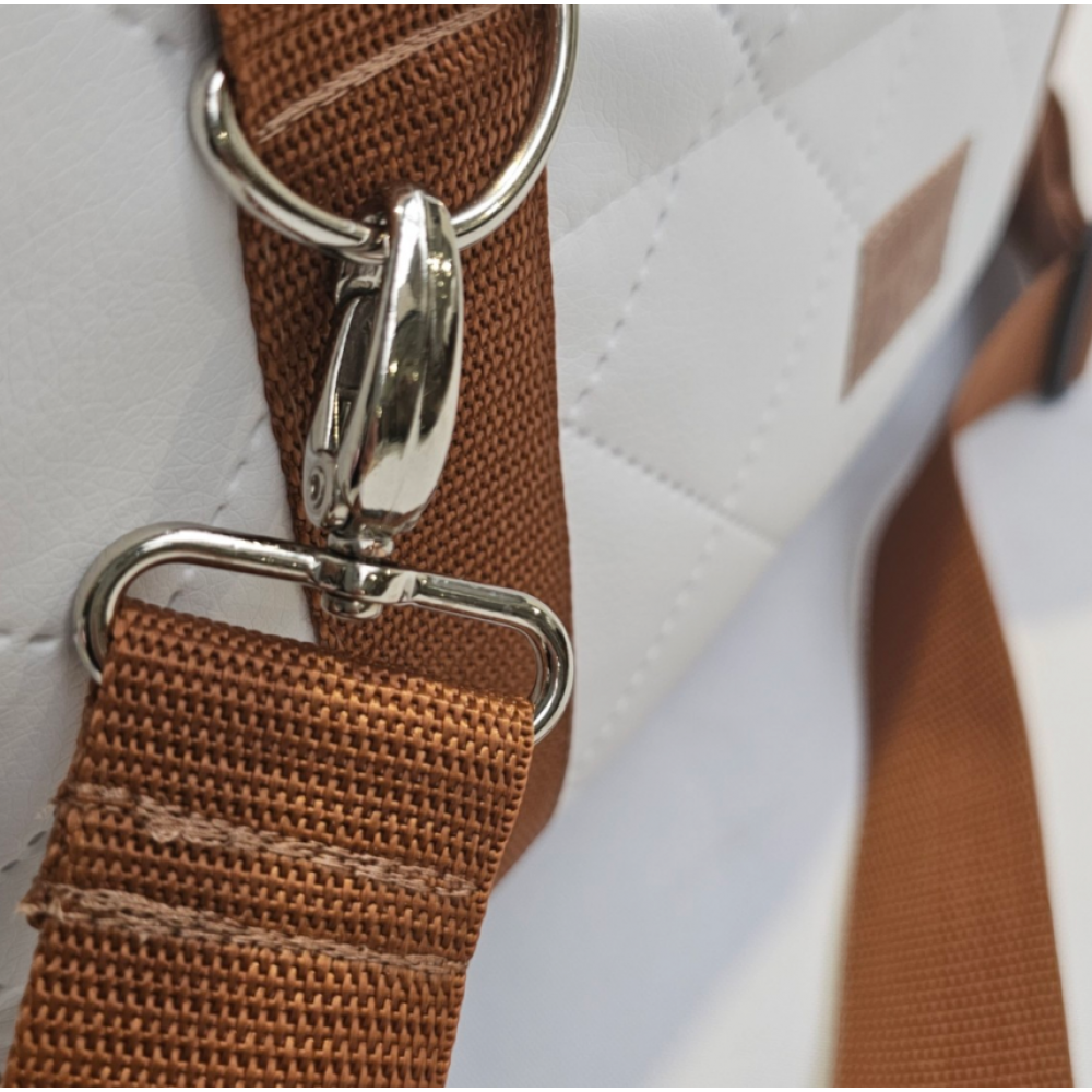 Popruh na zadnej strane nosiča umožňuje pripevniť ho k