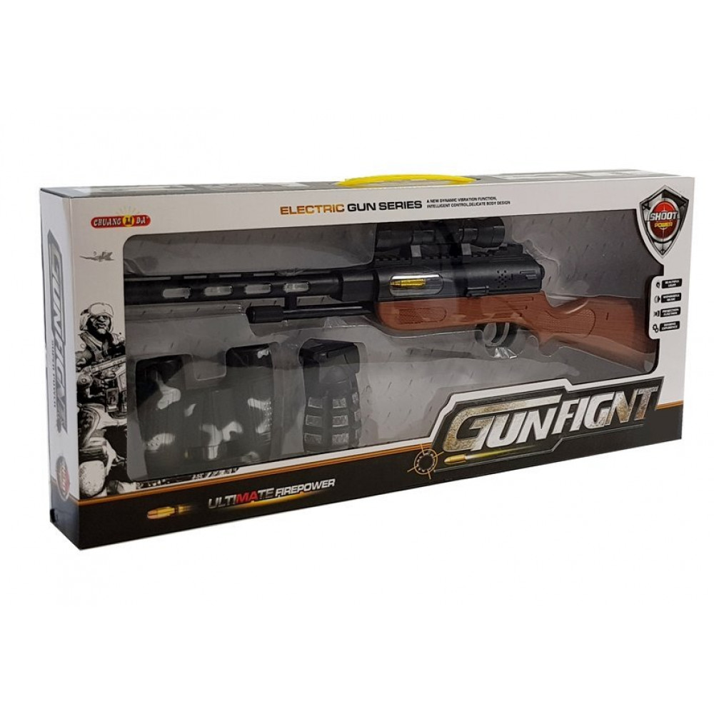Puška má všetko, čo dieťa potrebuje, aby si mohlo predstaviť vojenské misie, boj s nepriateľom a mnoho ďalších vzrušujúcich dobrodružstiev. Svetlá a zvuky upútajú pozornosť dieťaťa, dodajú boju realistickosť. Puška nefunguje na strelivo, takže je úplne bezpečná.