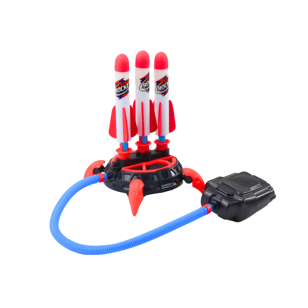 vystrelí ich raketu vyššie a ďalej. Rakety sú vyrobené z ľahkej, mäkkej peny,